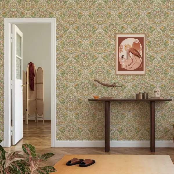 Тапет Декоративни листа в зелени и теракотени нюанси Nr. a00927v1