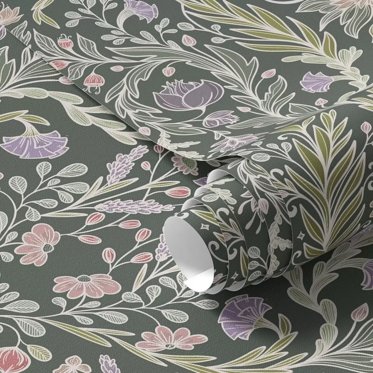 Тапет Симетричен флорален орнамент на тъмнозелен фон Nr. a00928