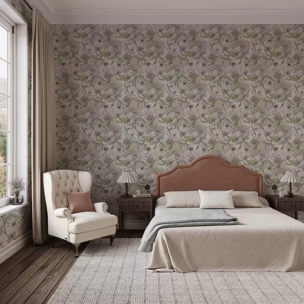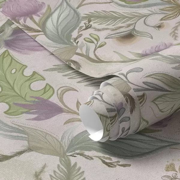 Тапет Лилави диви цветя и листа на прахообразен фон Nr. a00930v3