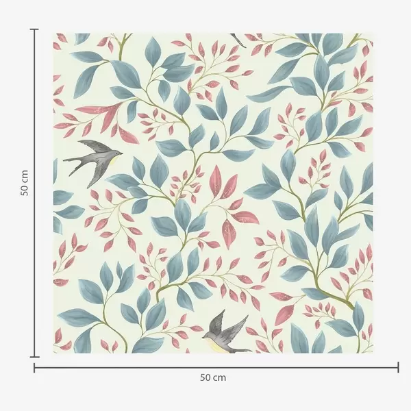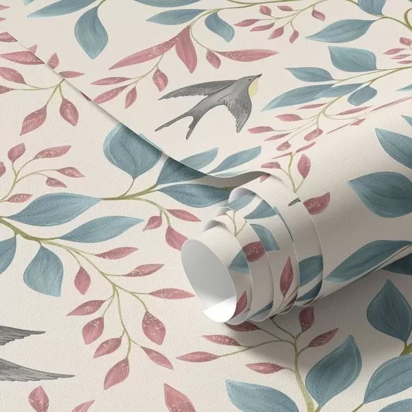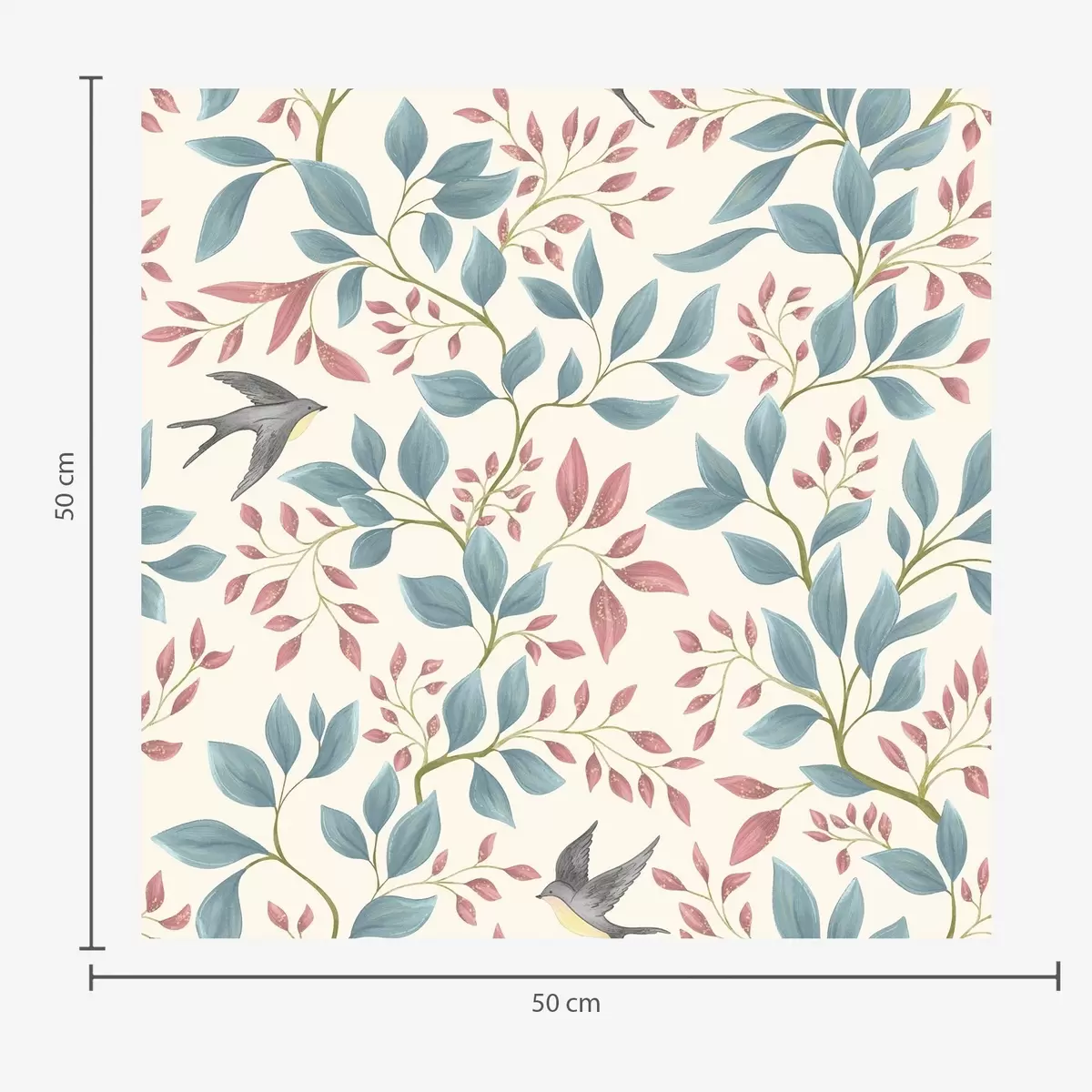 Тапет Сини и розови клони с птици на кремав фон Nr. a00933
