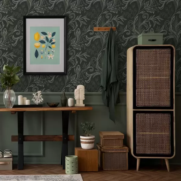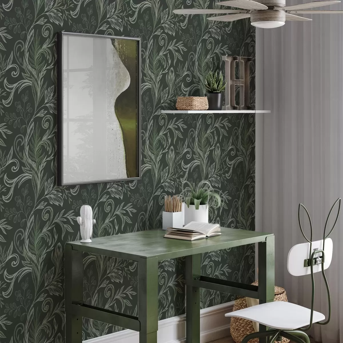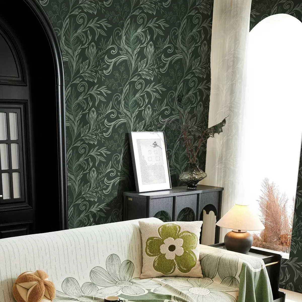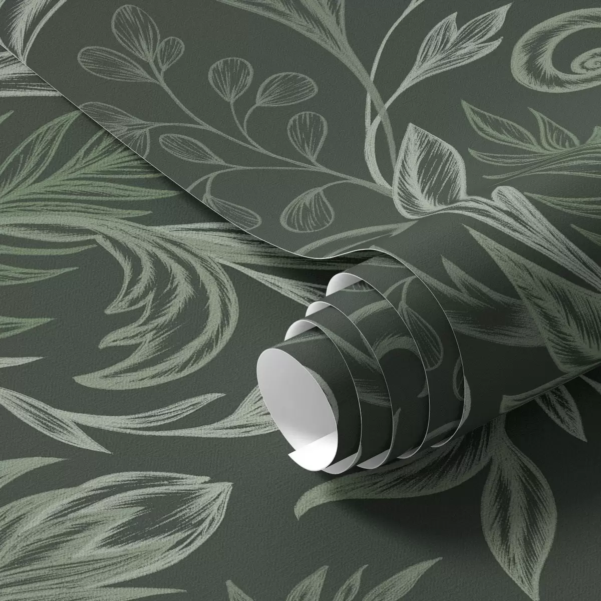 Тапет Дълбока гора с накъдрени листа в кремавозелени нюанси Nr. a00935v2