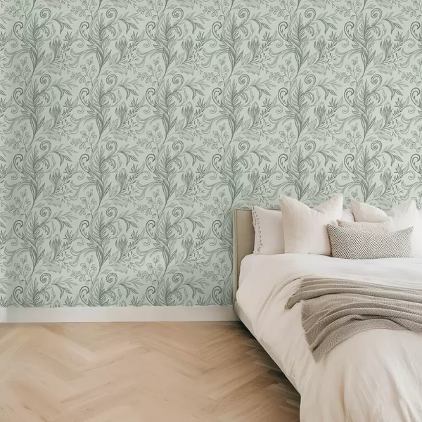 Тапет Меки листа с аромат на мента, навити в нежни сиво-зелени линии Nr. a00935v3