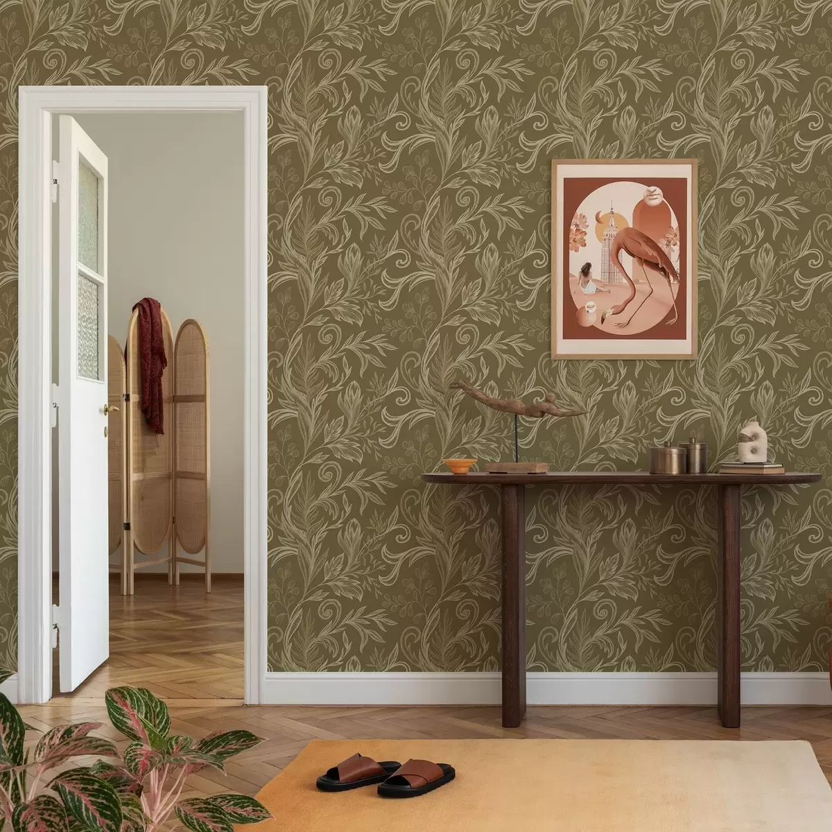 Тапет Топли какиви накъдрени листа с леки кремави акценти Nr. a00935v4