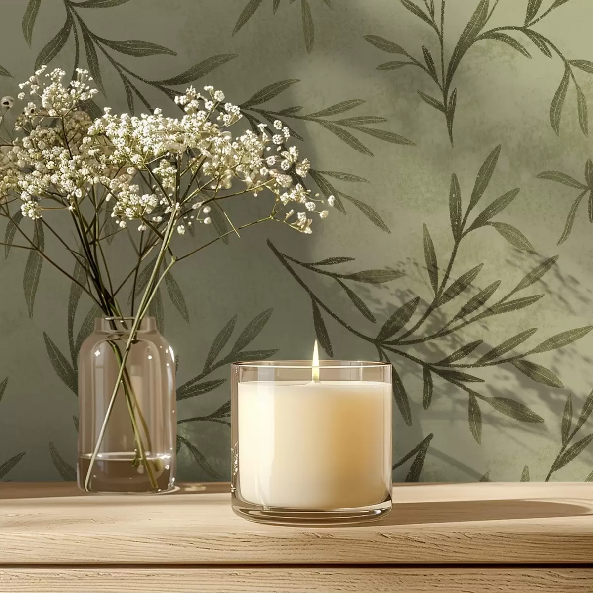 Тапет Клончета маслина върху приглушен жълто-зелен текстуриран фон Nr. a00936