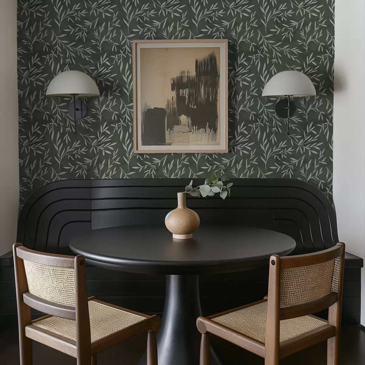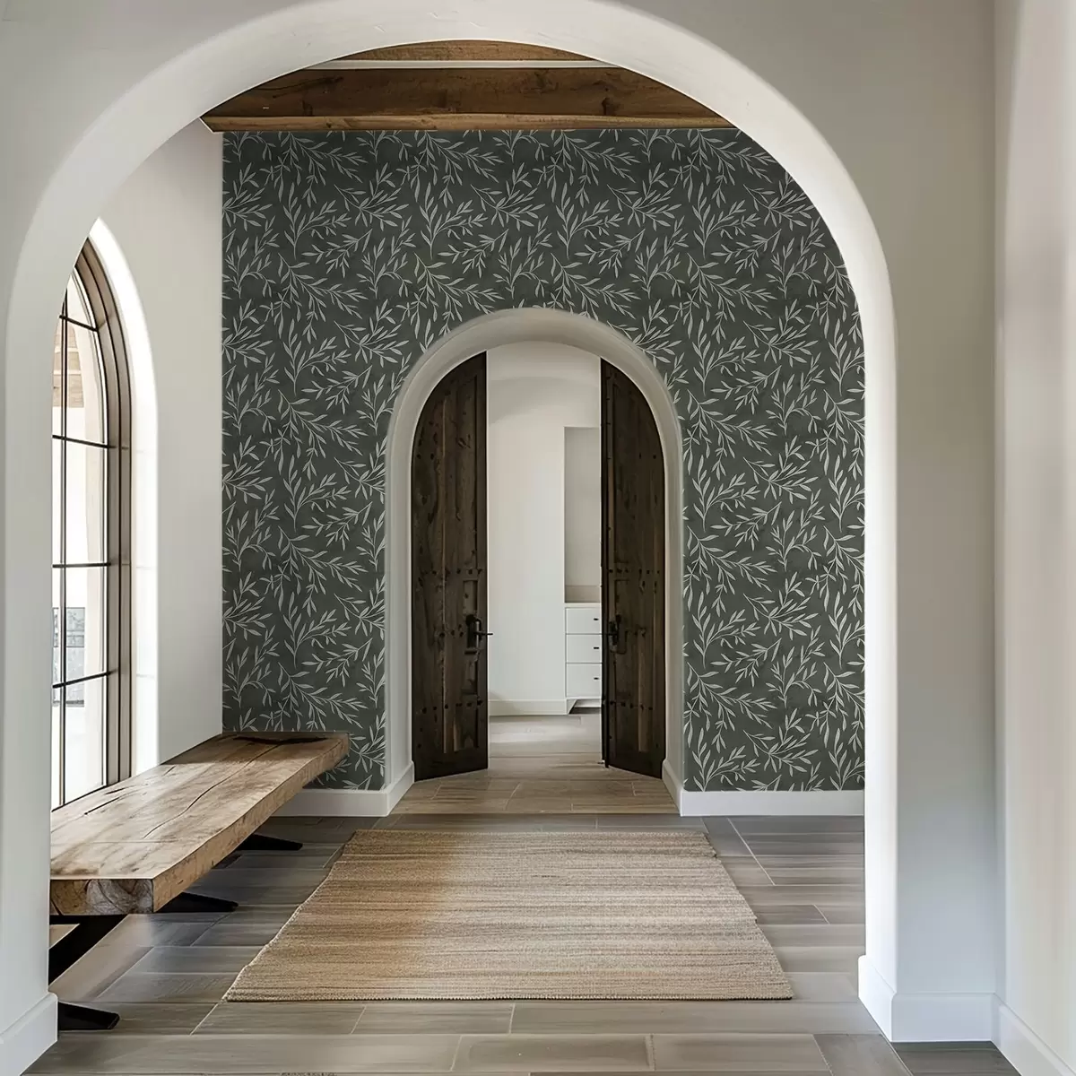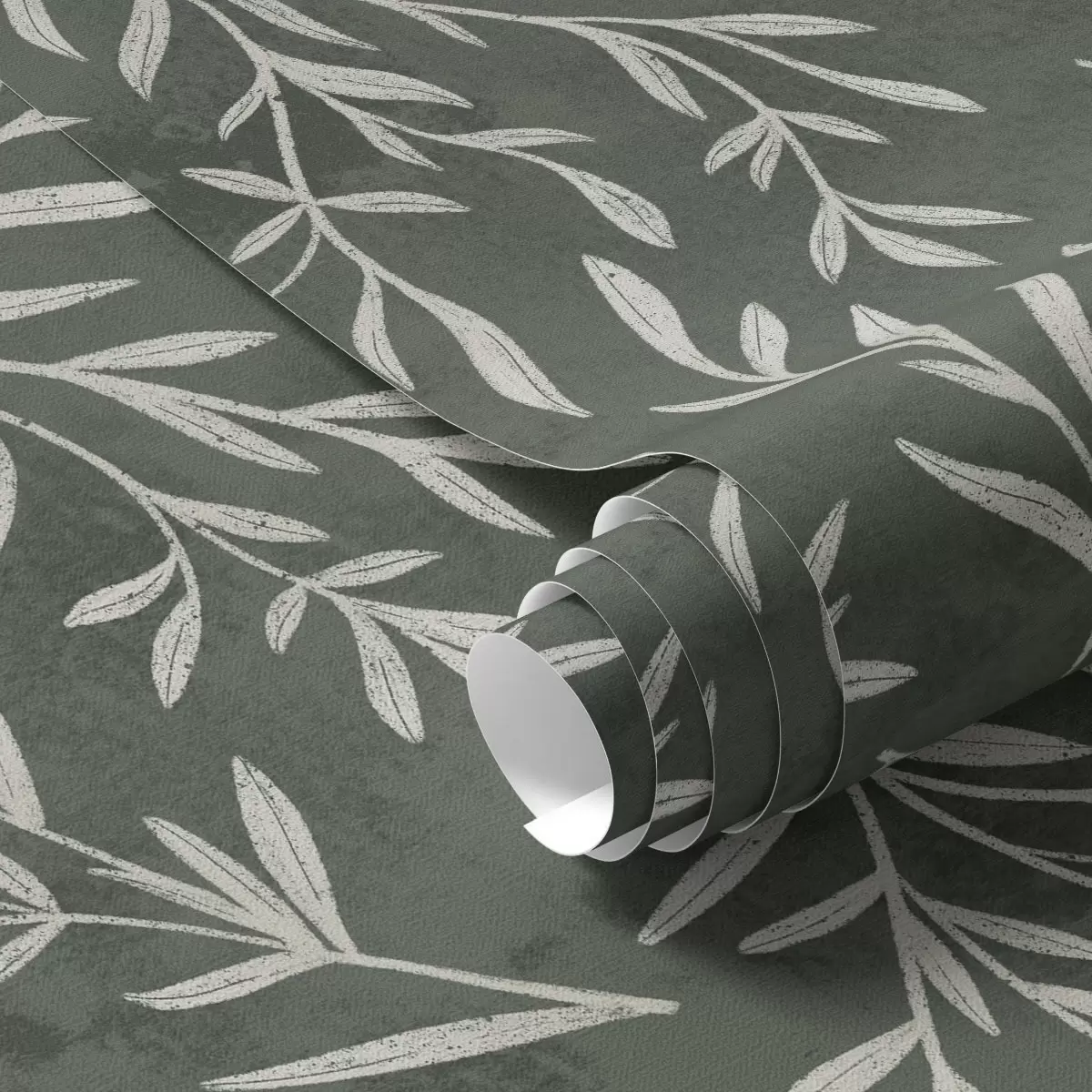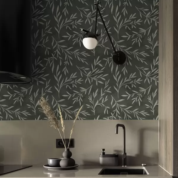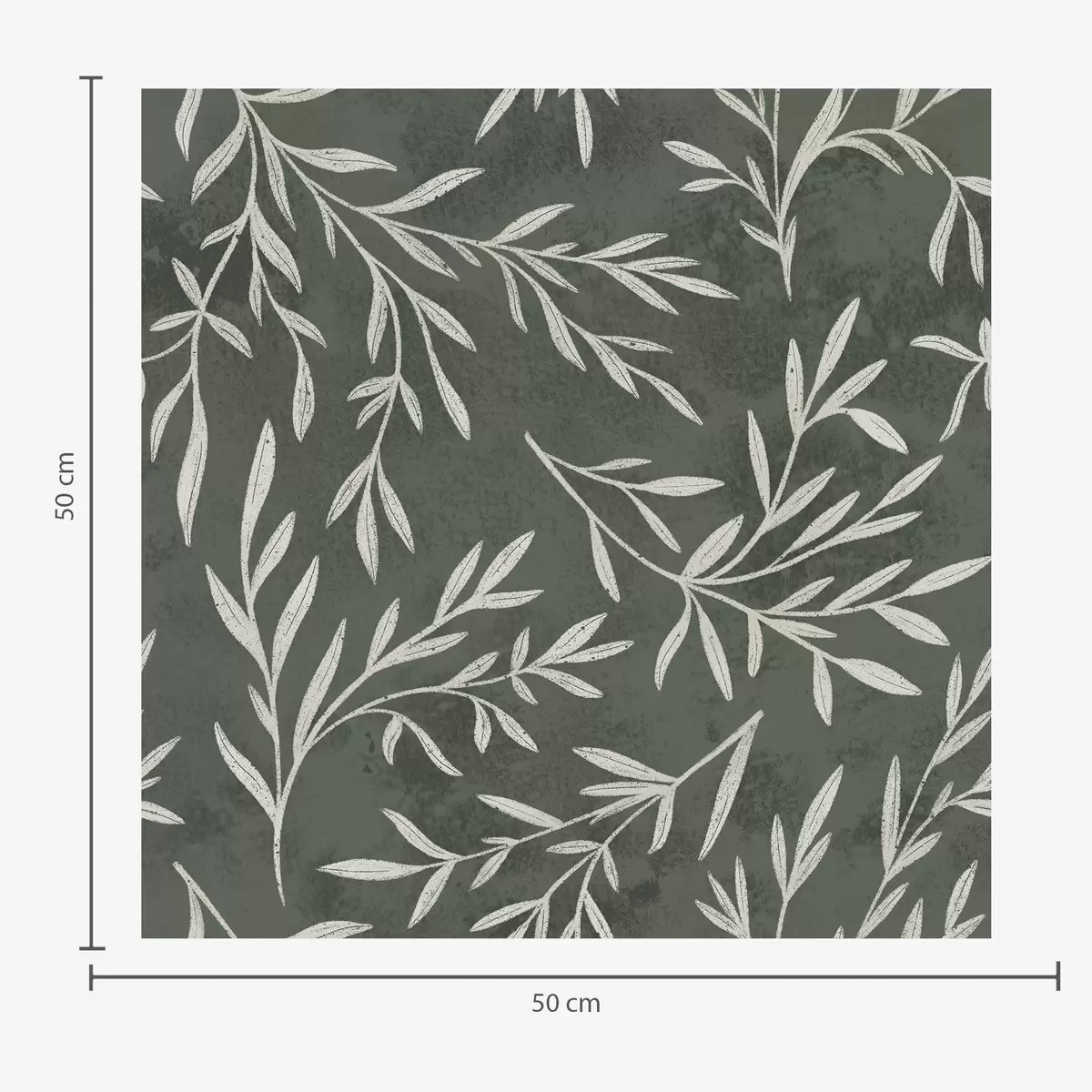 Тапет Нарисувани бели клони на тъмнозелен фон Nr. a00936v2