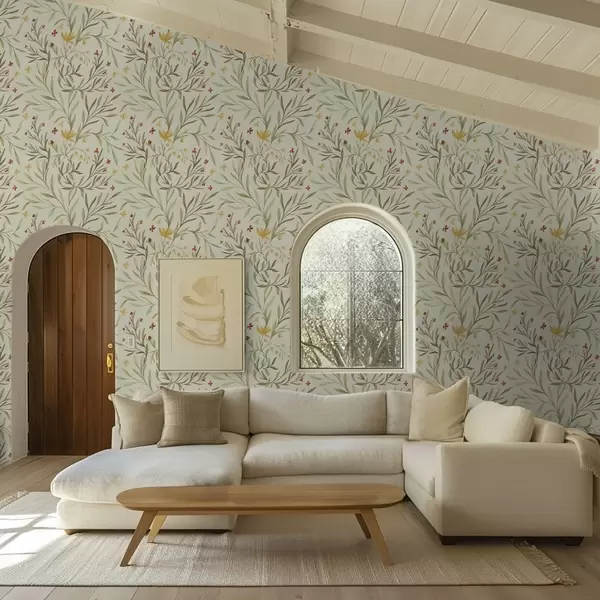 Тапет Жълти и червени цветя на светлозелен фон Nr. a00937