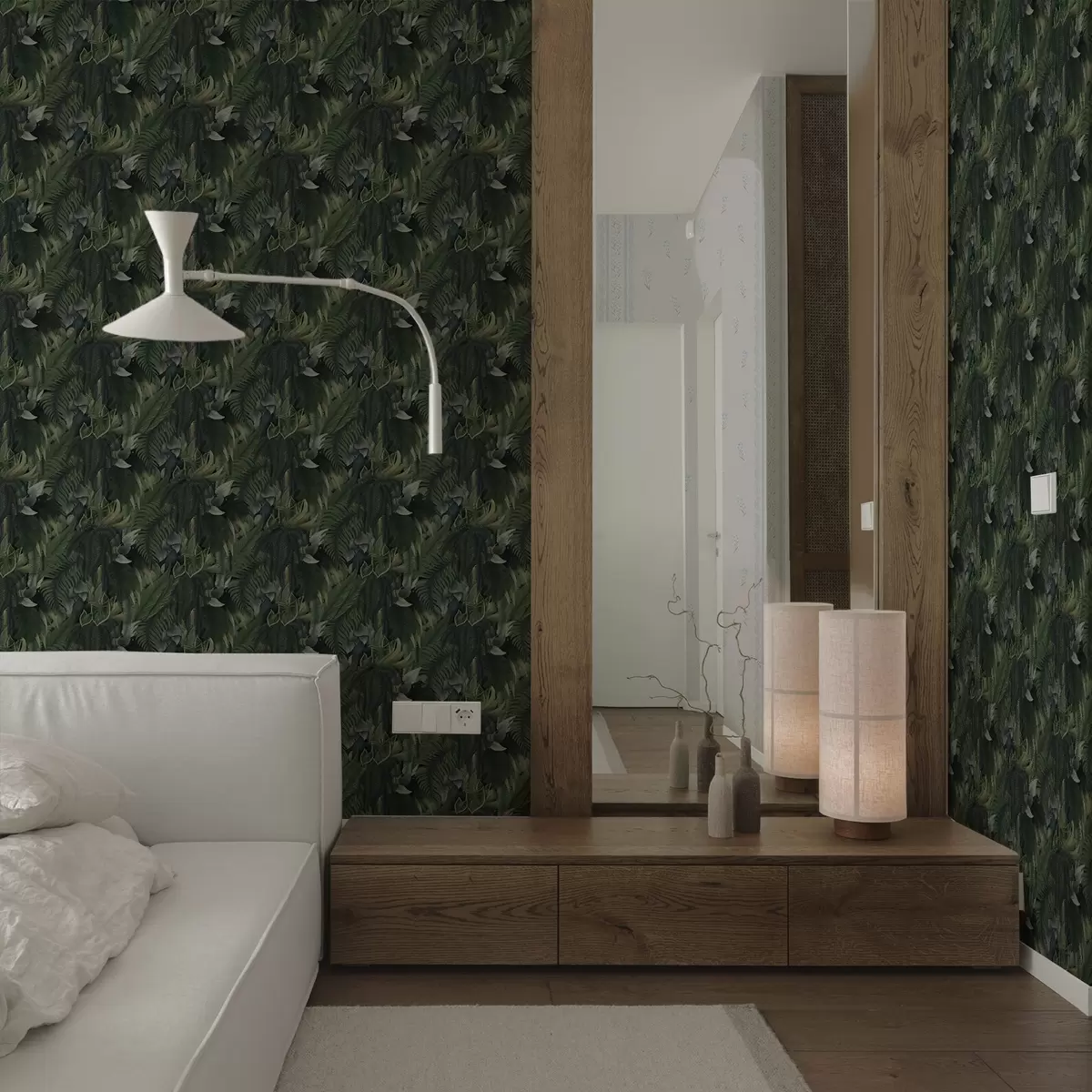 Тапет Гъста тропическа растителност в тъмнозелени гъсталаци Nr. a00943