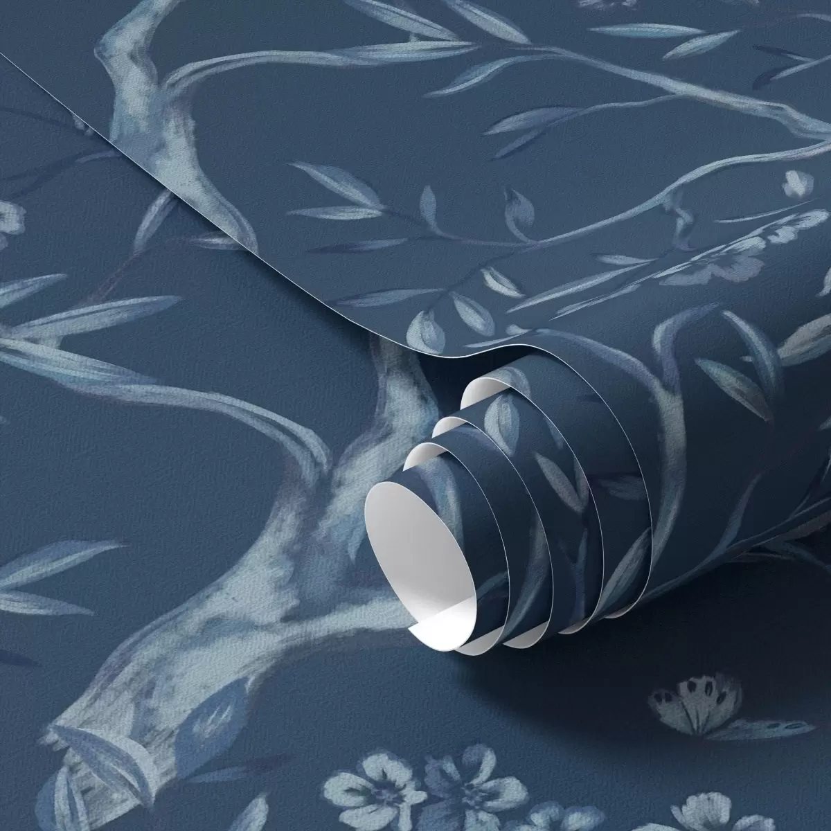 Тапет Сини цъфтящи клони с пеперуди на тъмен фон Nr. a00951v1