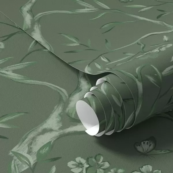 Тапет Зелени цъфтящи клони с пеперуди на тъмен фон Nr. a00951v3