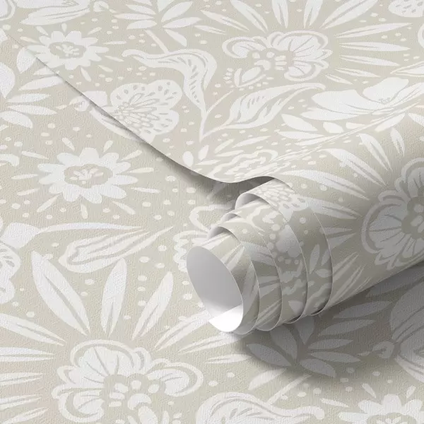 Тапет Бял линеен флорален орнамент върху бежов фон Nr. a00956