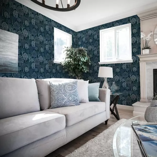 Тапет Нощна гора с декоративни дървета в сини нюанси Nr. a00960v2