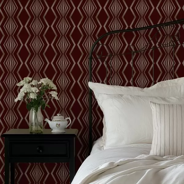 Тапет Бургунди фон с ритмични ромбове и зигзагообразни линии Nr. a00974