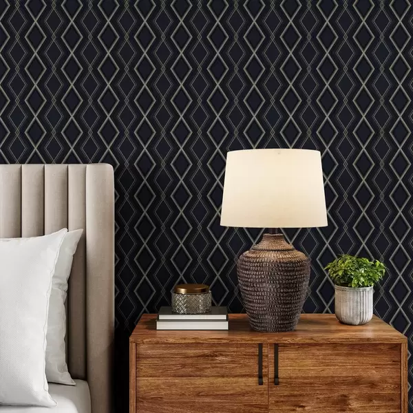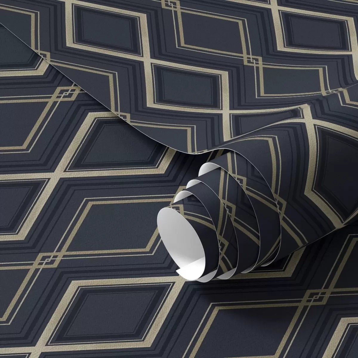 Тапет Тъмносиня диамантена решетка с тънки светли линии Nr. a00975