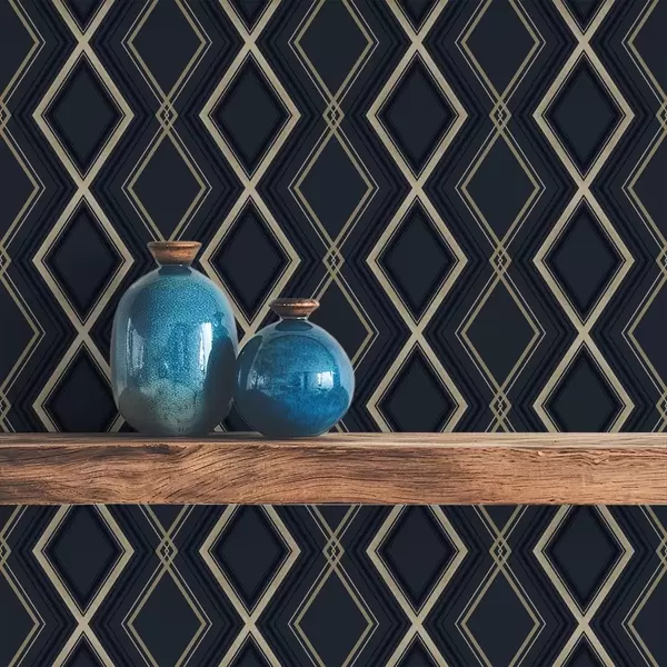 Тапет Тъмносиня диамантена решетка с тънки светли линии Nr. a00975