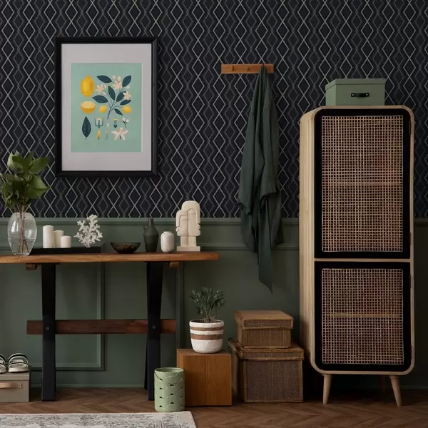 Тапет Тъмносиня диамантена решетка с тънки светли линии Nr. a00975