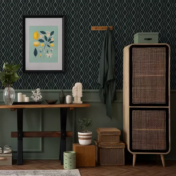 Тапет Тъмно синьо-зелен фон с повтаряща се ромбовидна мрежа Nr. a00975v1