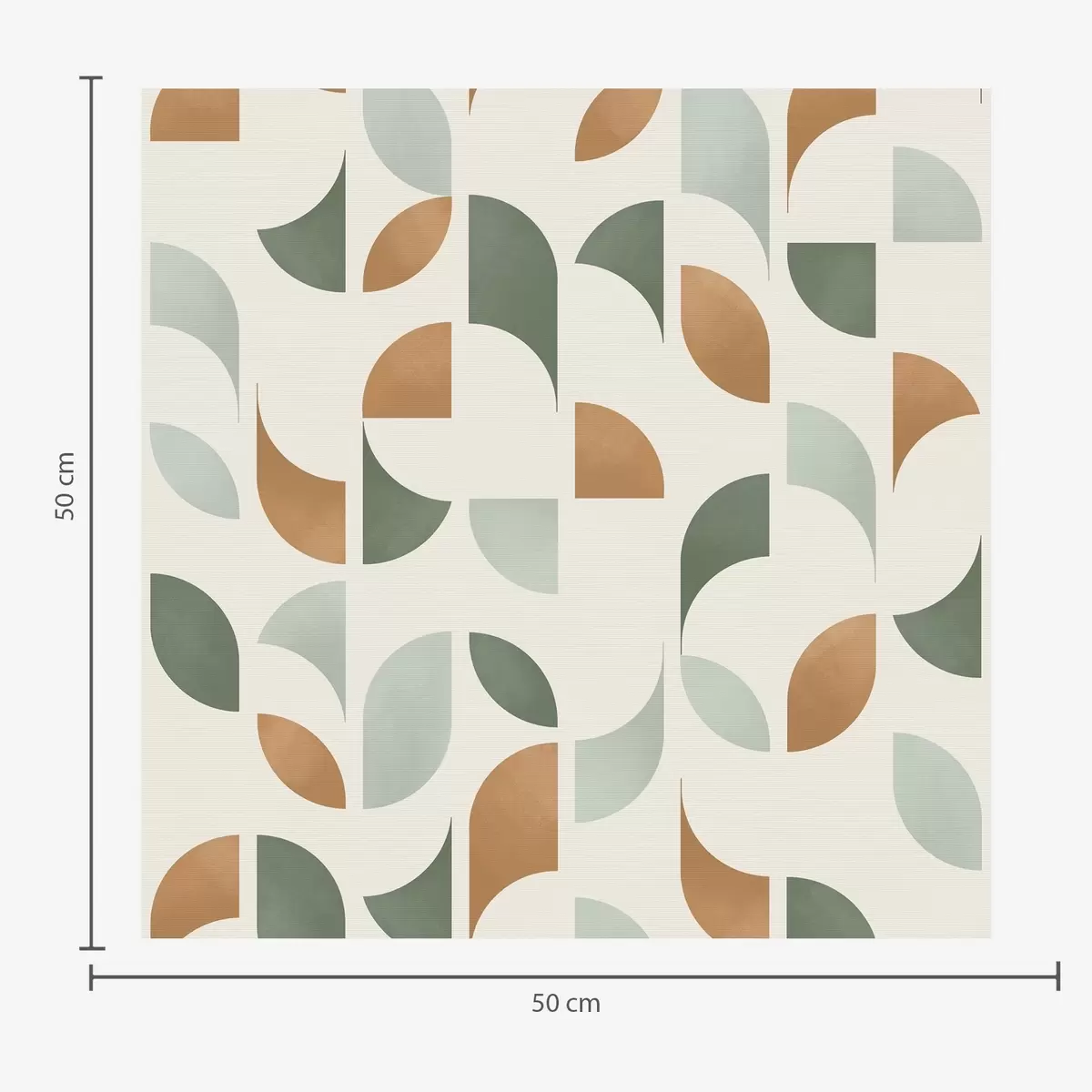 Тапет Абстрактни полукръгове и листа в зелено и теракота Nr. a00985