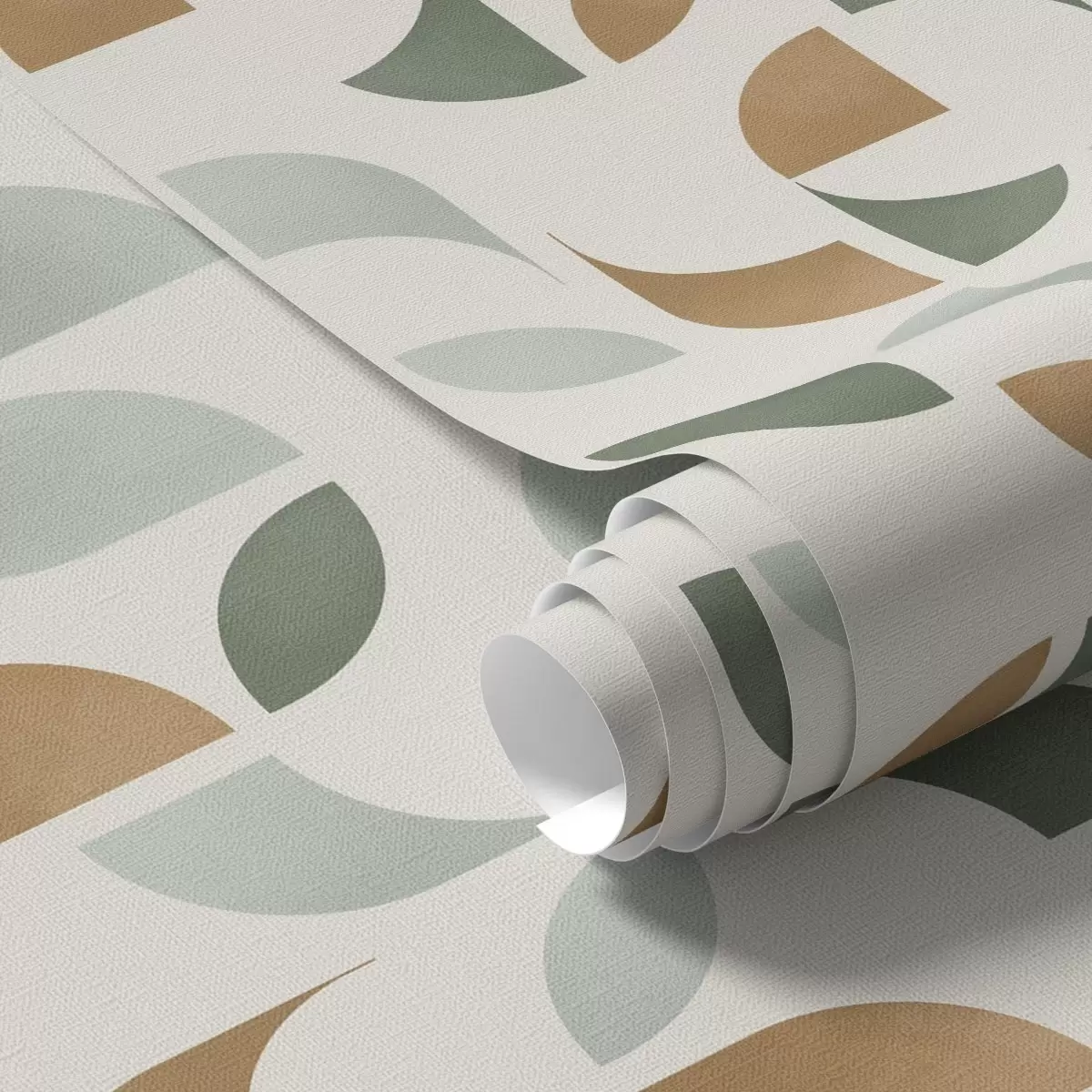 Тапети Абстрактни полукръгове и листа в зелено и теракота a00985