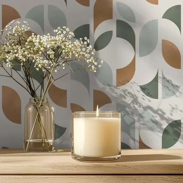 Тапет Вертикални колони от полукръгове и листа, зелено-теракота Nr. a00986