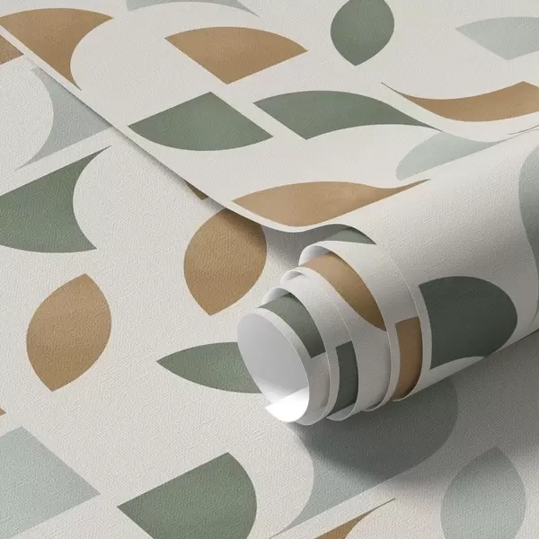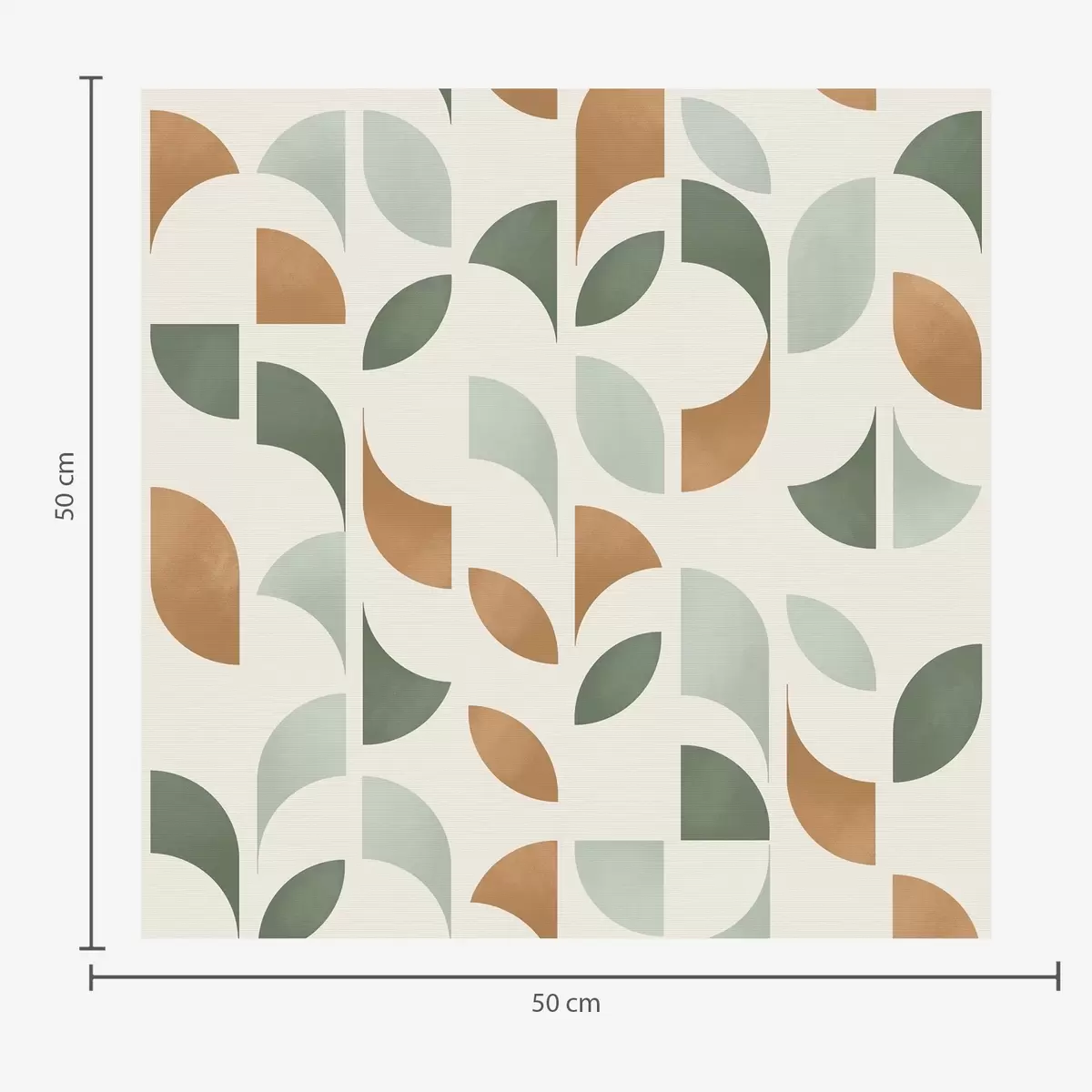 Тапет Вертикални колони от полукръгове и листа, зелено-теракота Nr. a00986