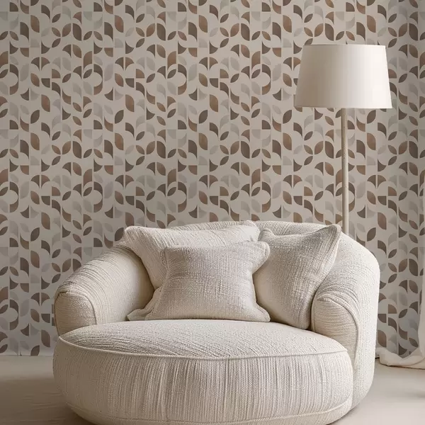 Тапет Ритмични полукръгове и листа в топли карамеленокафяви тонове Nr. a00986v1