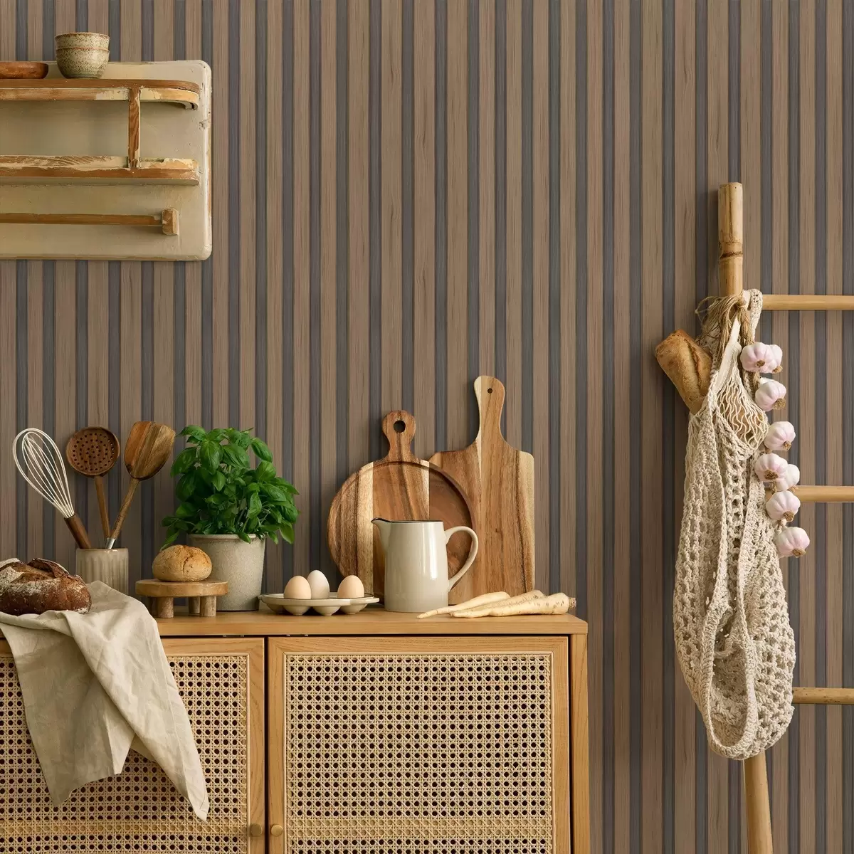 Тапет Вертикални дървени ламели с тъмносиви вложки Nr. a00991