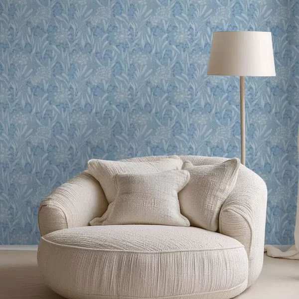 Тапет Замръзнала синя поляна с семена от глухарче и малки цветя Nr. a00995