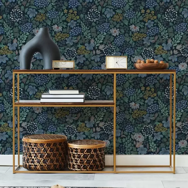 Тапет Нощна градина със сини лилии, горски плодове и дива зеленина Nr. a00996