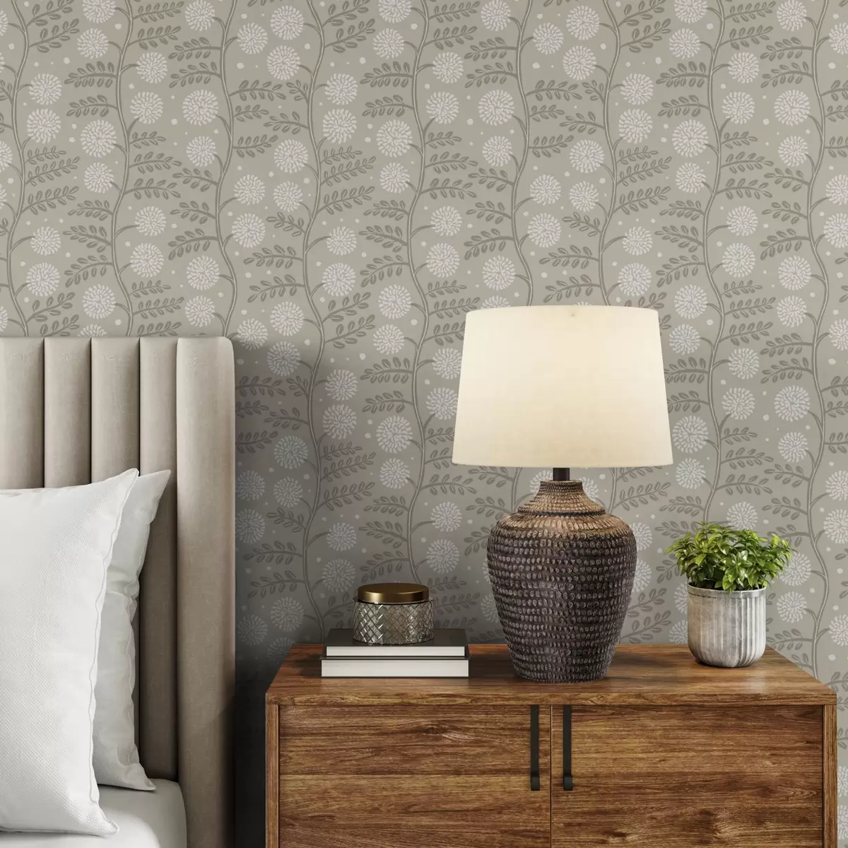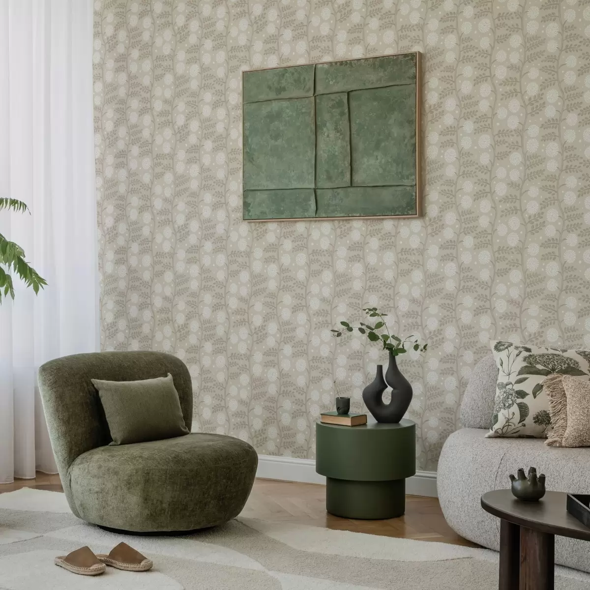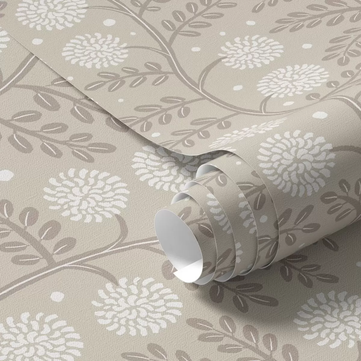 Тапет Бежови стъбла с бели пухкави цветя и меки точки Nr. a00997