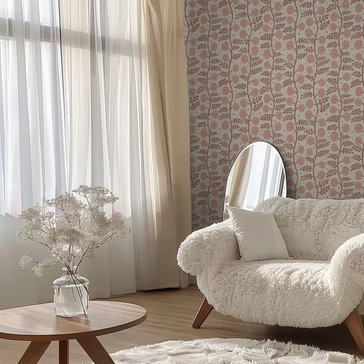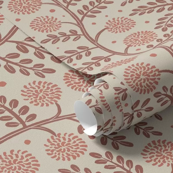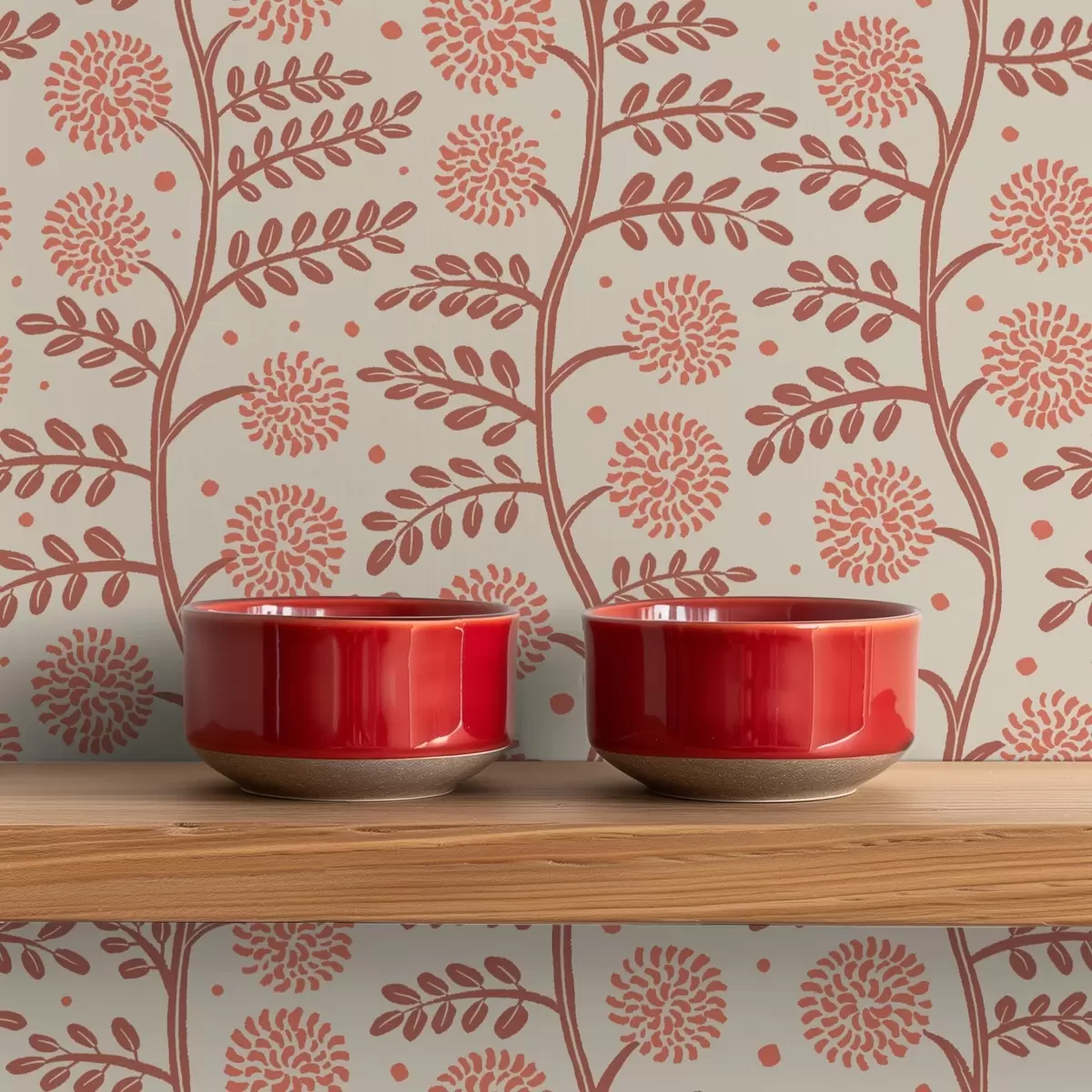 Тапет Теракотени стъбла с пухкави коралови цветя на кремав фон Nr. a00997v1