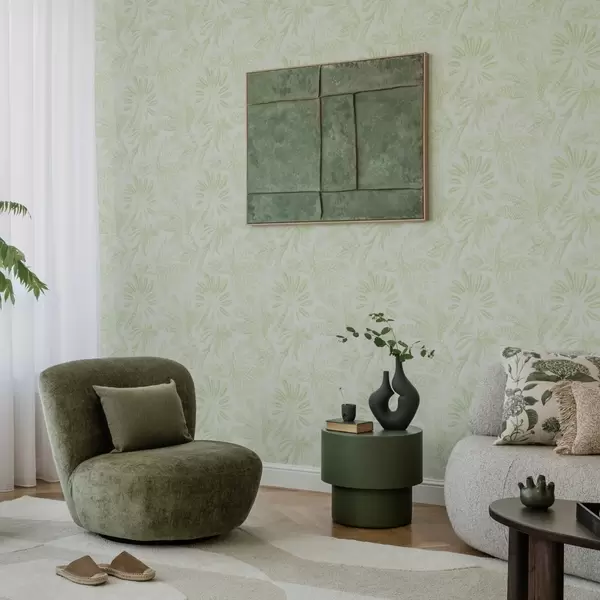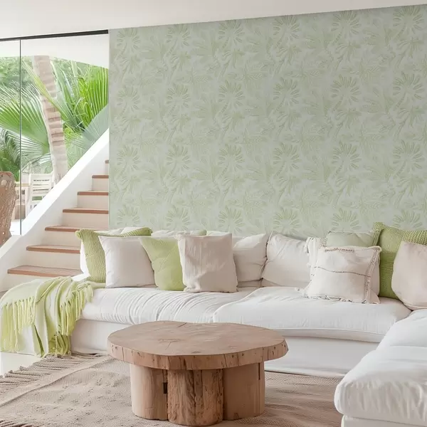 Тапет Нарисувани тропически листа в свежи светлозелени тонове Nr. a01001v1