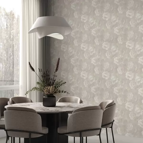 Тапет Избледнели божури върху ленена текстура в мека бежова палитра Nr. a01018