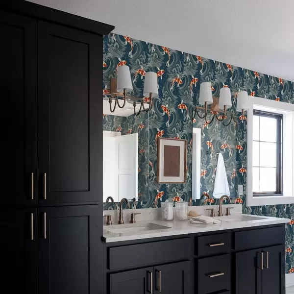 Тапет Кои риби плуват сред драматични океански вълни Nr. a01019