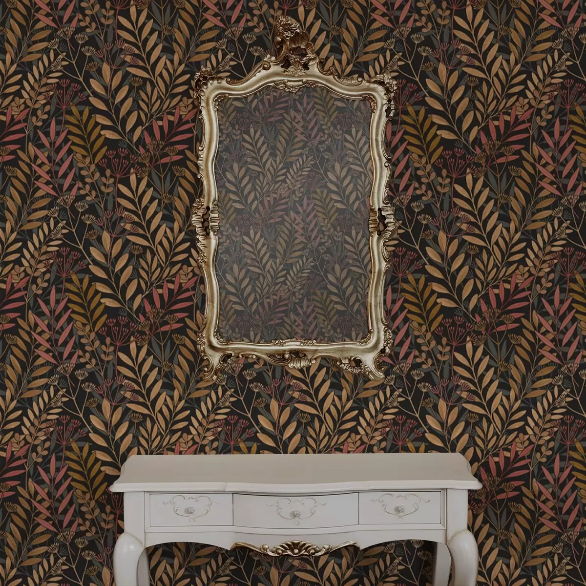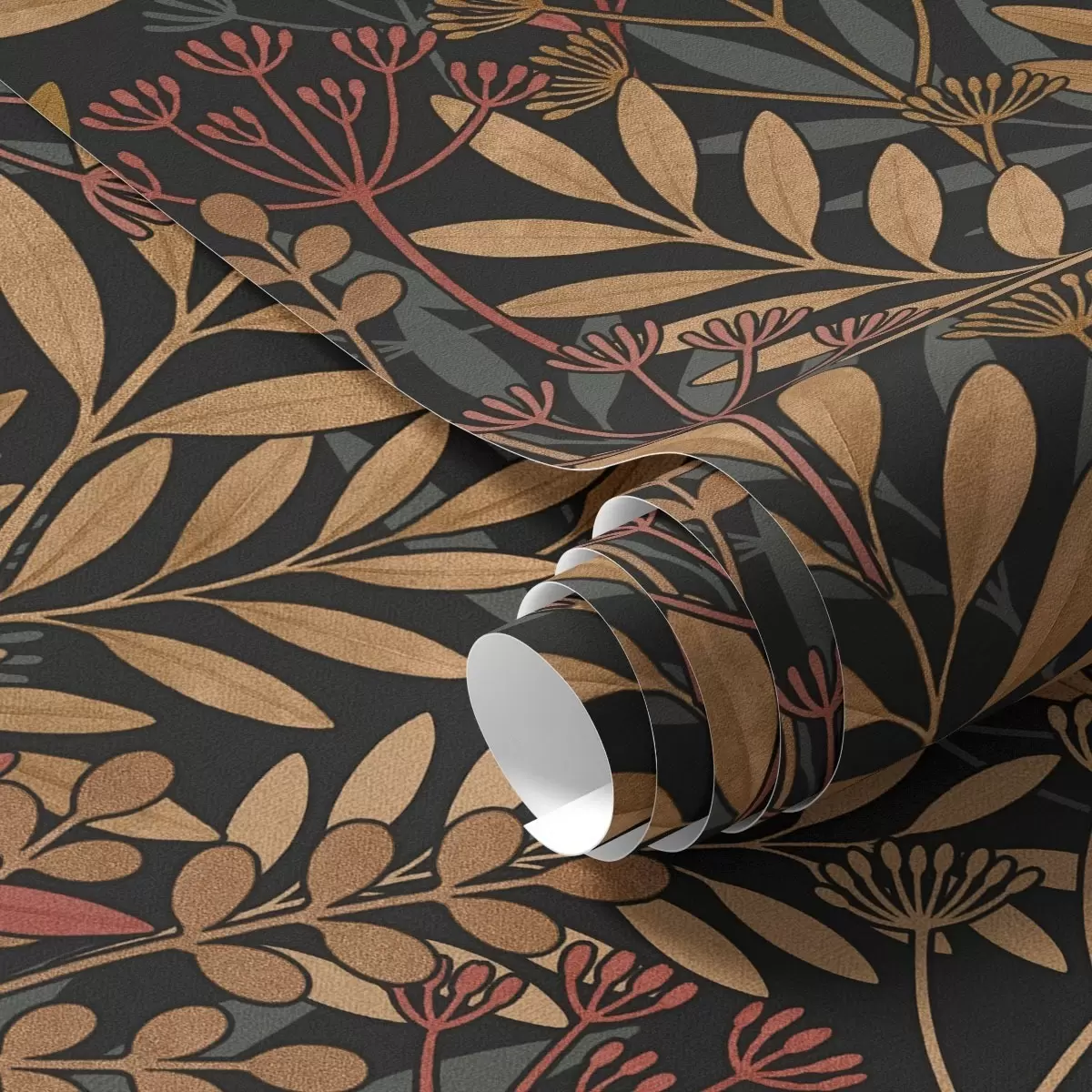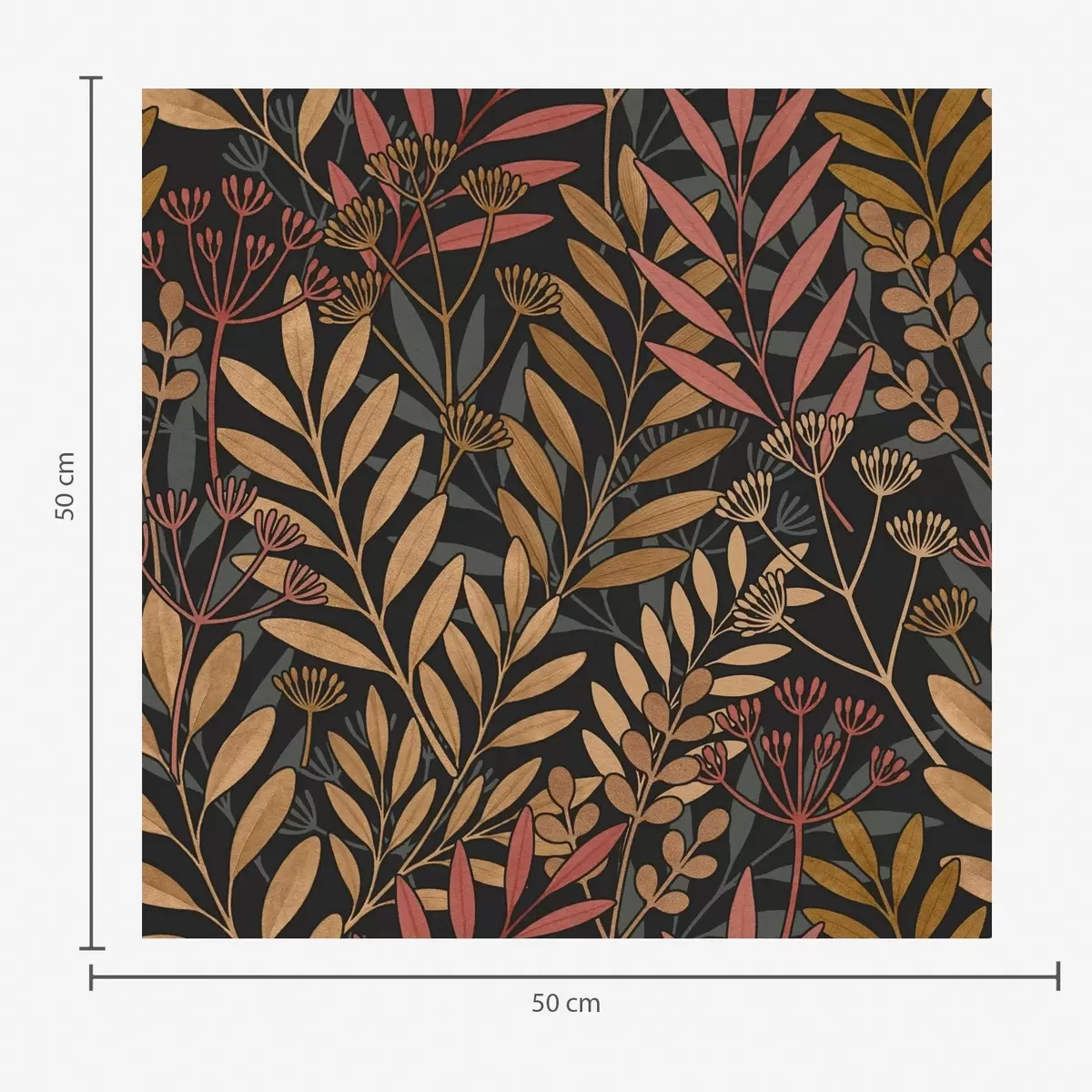 Тапет Тъмна поляна със стилизирани листа и семенни шушулки Nr. a01020