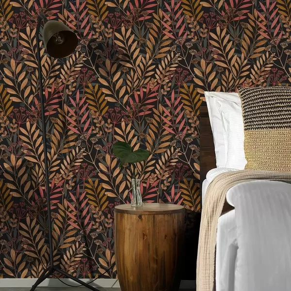 Тапет Тъмна поляна със стилизирани листа и семенни шушулки Nr. a01020