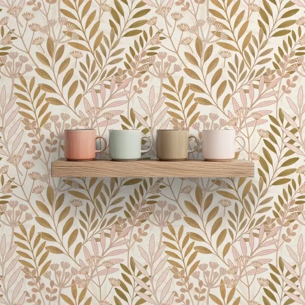 Тапет Лек ботаничен мотив с нежни листа в розово и овесено кафяво Nr. a01020v1