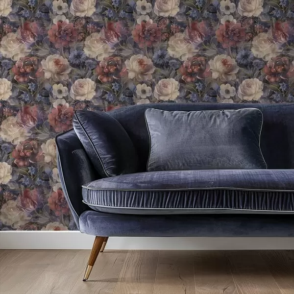 Тапет Живописен букет от големи цветя на тъмно син фон Nr. a01021