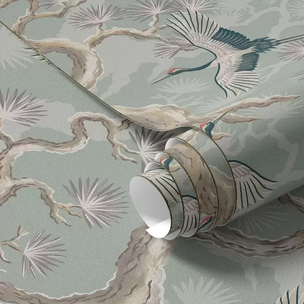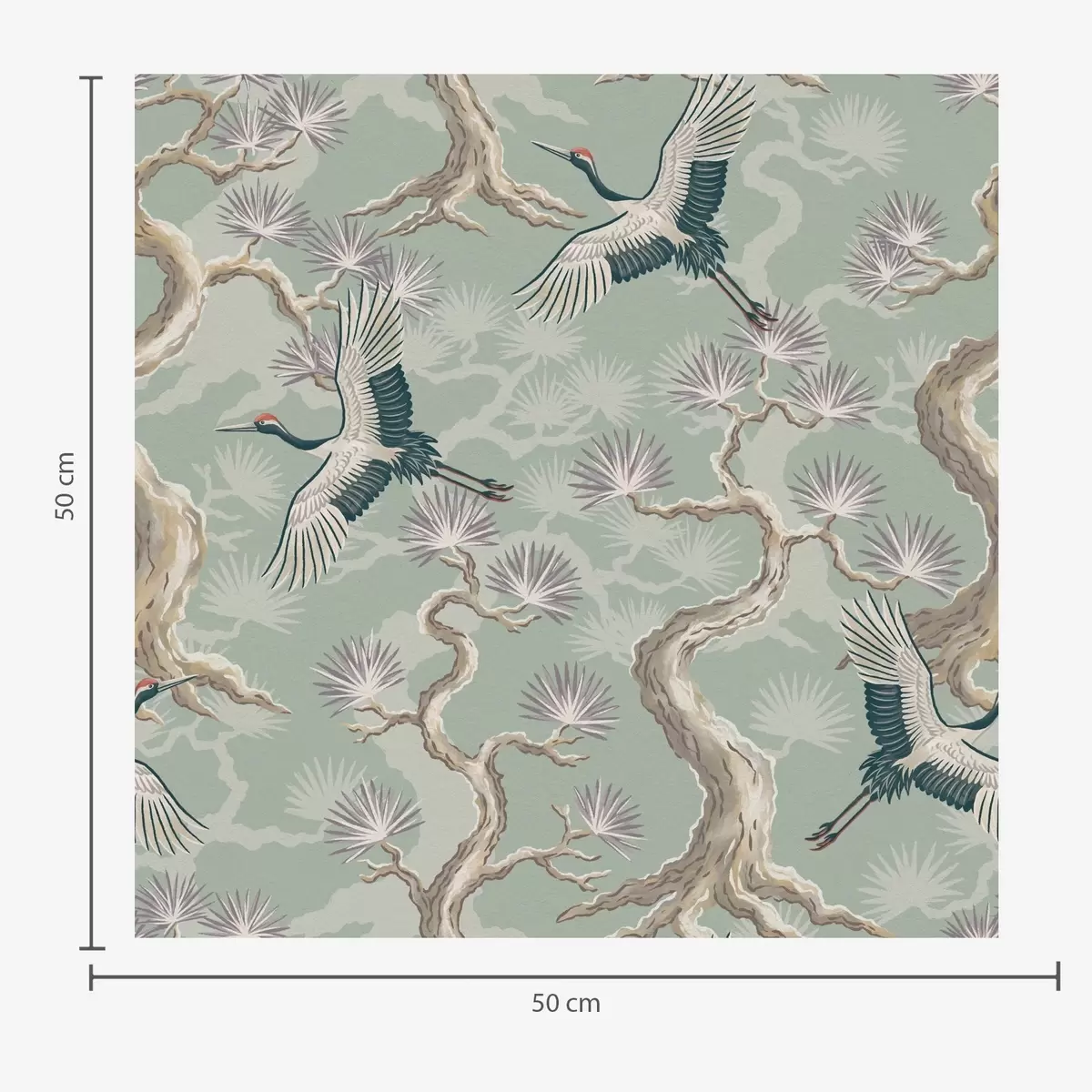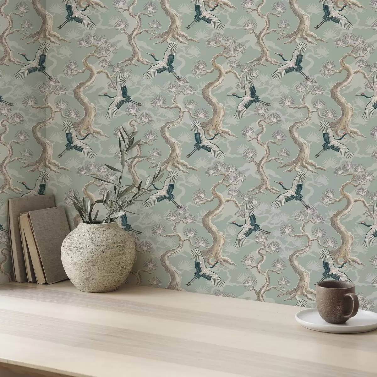 Тапет Журавли сред извити клони на мек салатов фон Nr. a01023