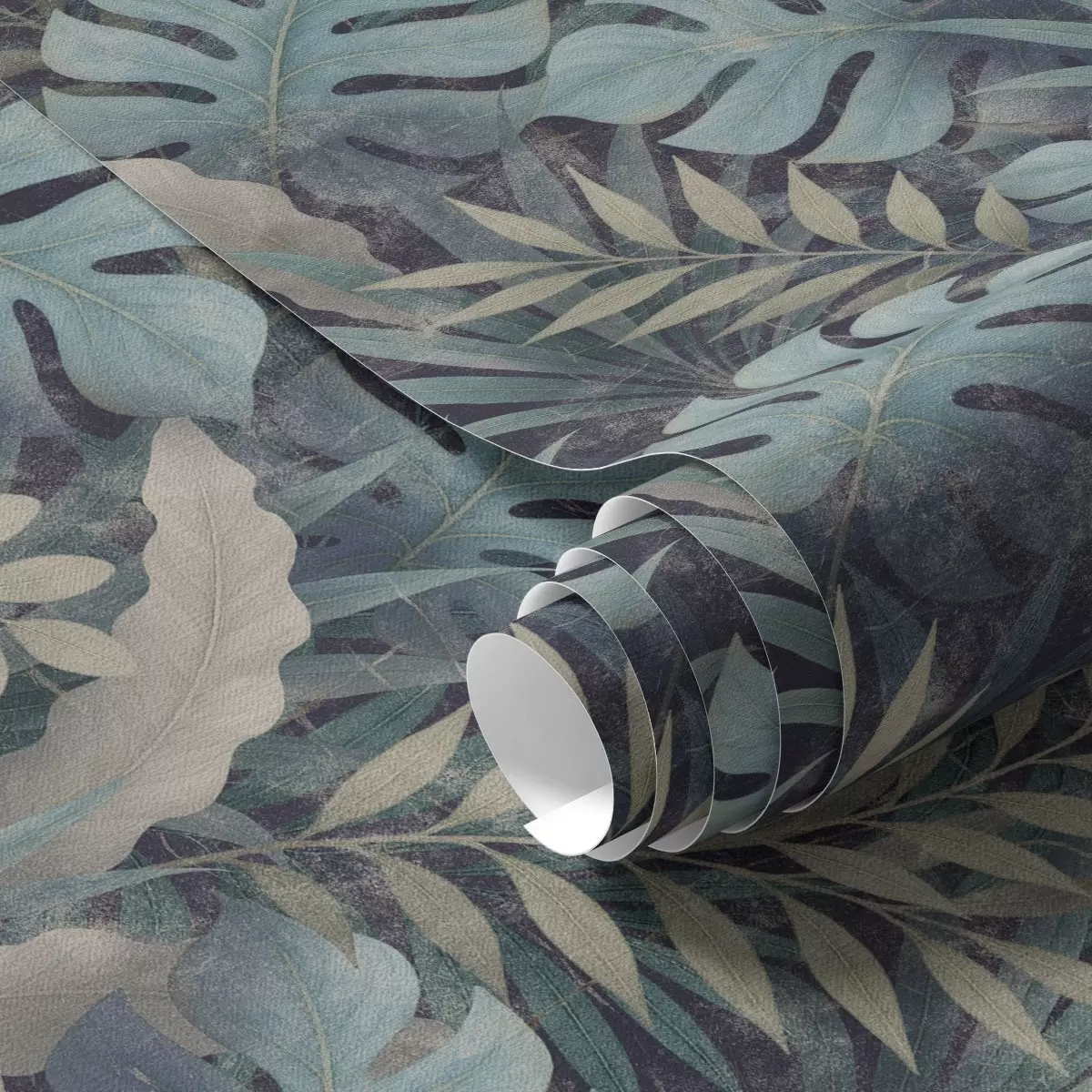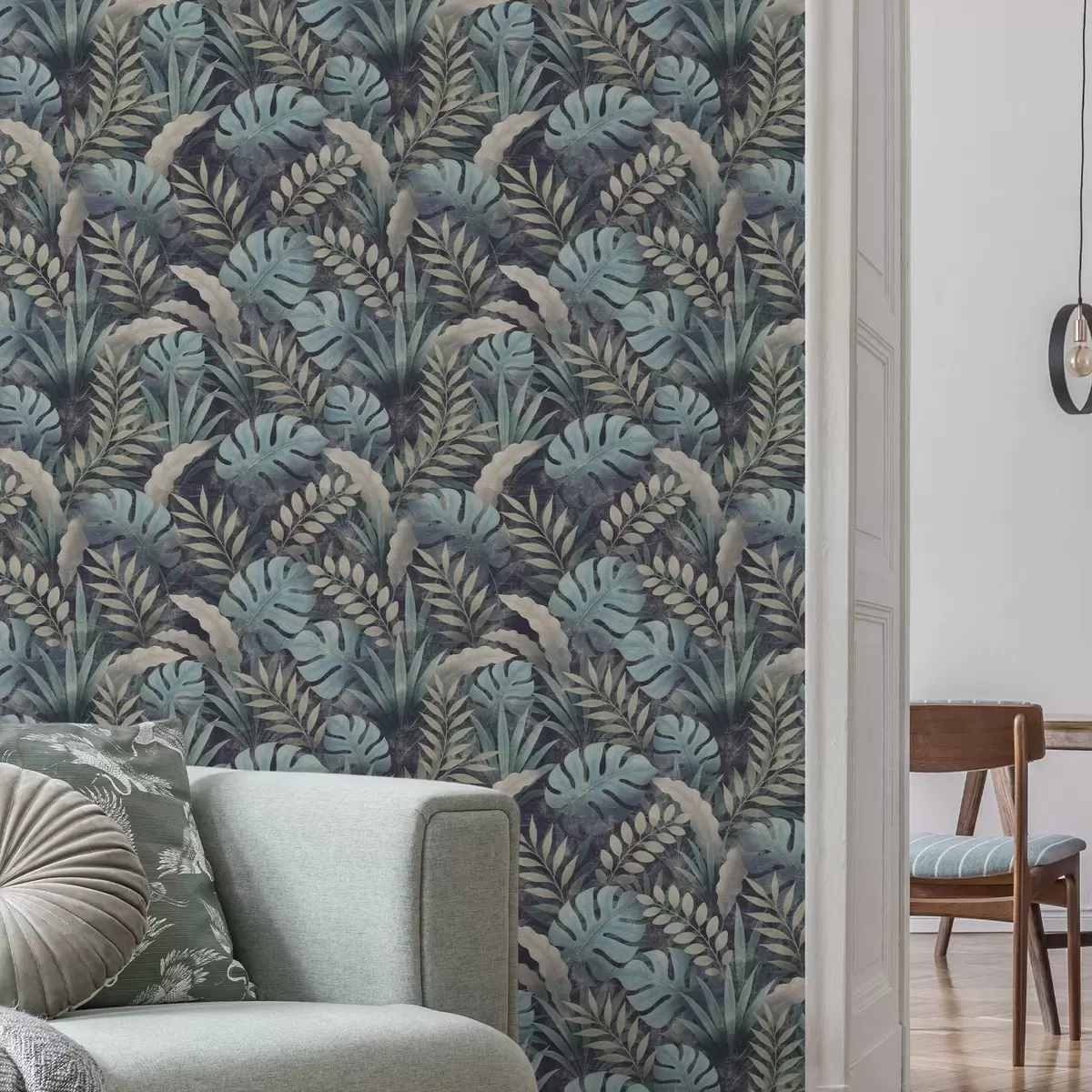 Тапет Тропическа растителност в прохладни синьо-зелени тонове Nr. a01035