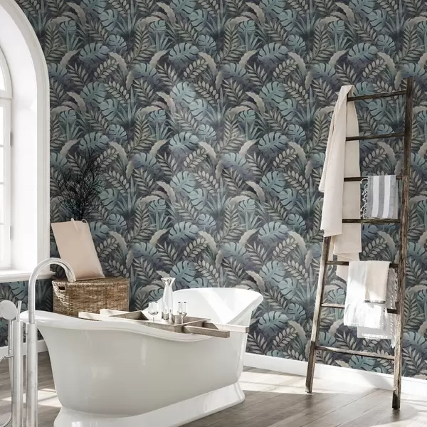 Тапет Тропическа растителност в прохладни синьо-зелени тонове Nr. a01035