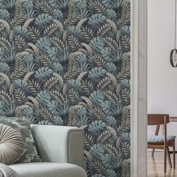 Тапет Тропическа растителност в прохладни синьо-зелени тонове Nr. a01035