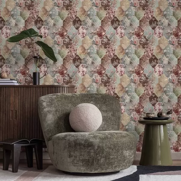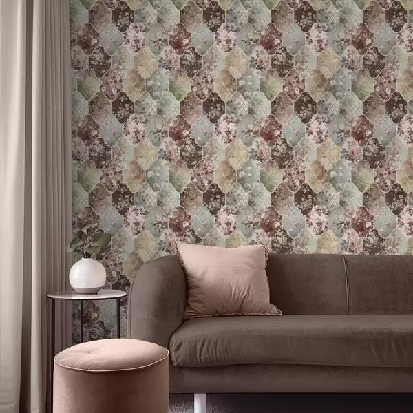 Тапет Мозайка от флорални панели и износени плочки с шарки Nr. a01038