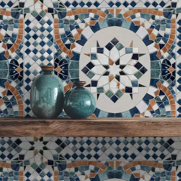 Тапет Ярка мароканска мозайка в синьо-тюркоазени тонове Nr. a01043