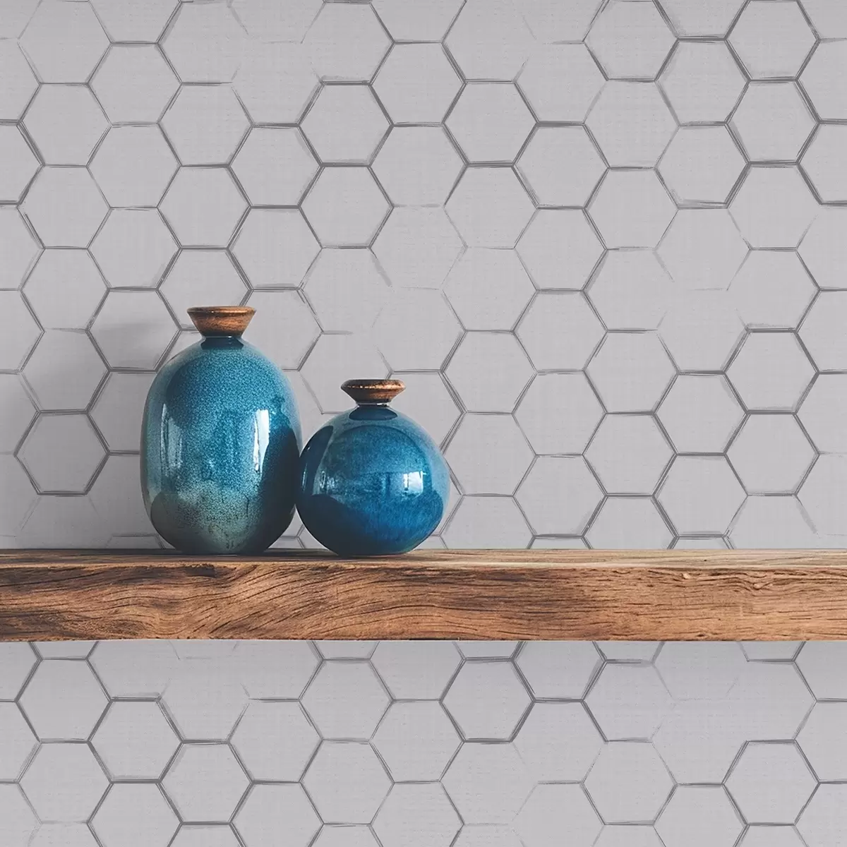 Тапет Фина шестоъгълна мрежа върху светлосив текстуриран фон Nr. a01060