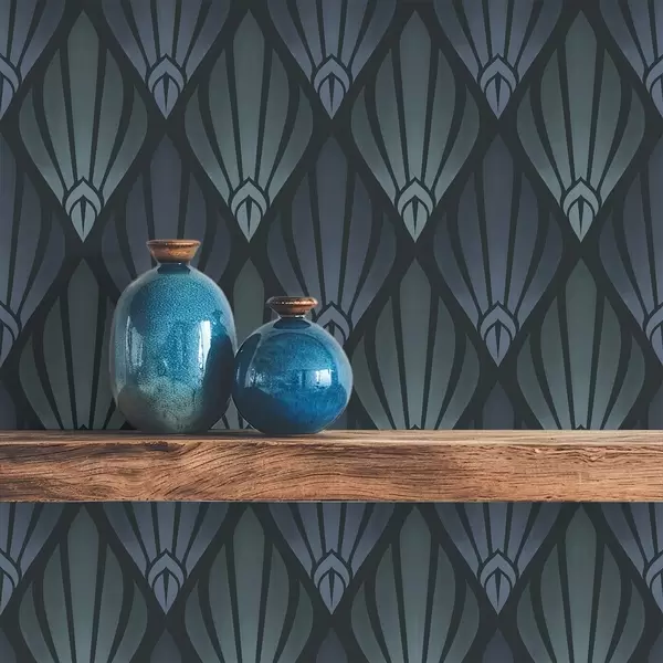 Тапет Хладен синьо-сив арт деко с ветрилообразни форми Nr. a01064v3