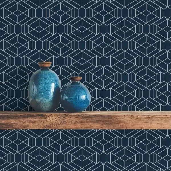 Тапет Тъмно синя геометрична решетка от кубове Nr. a01066v1