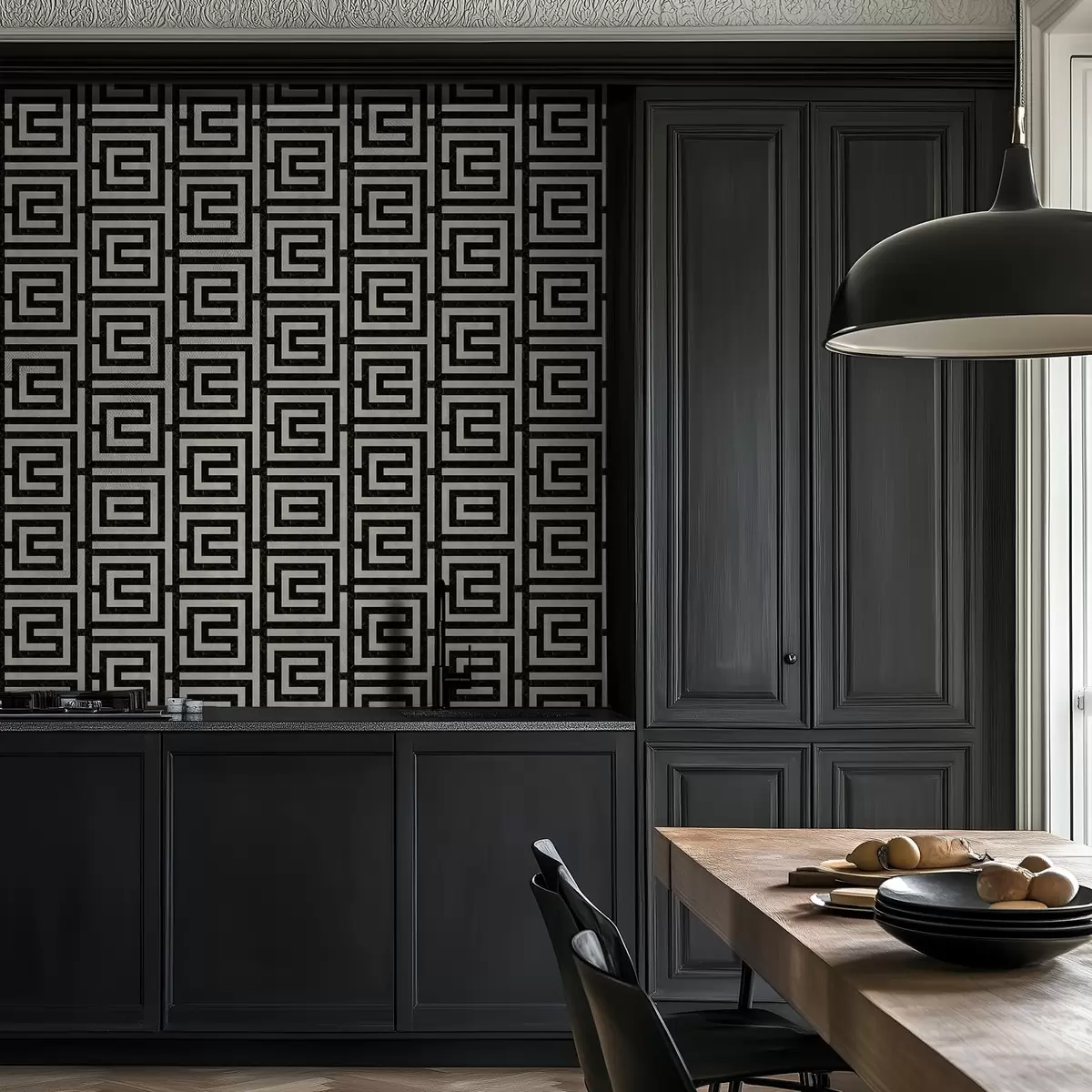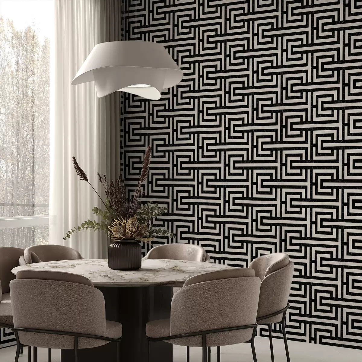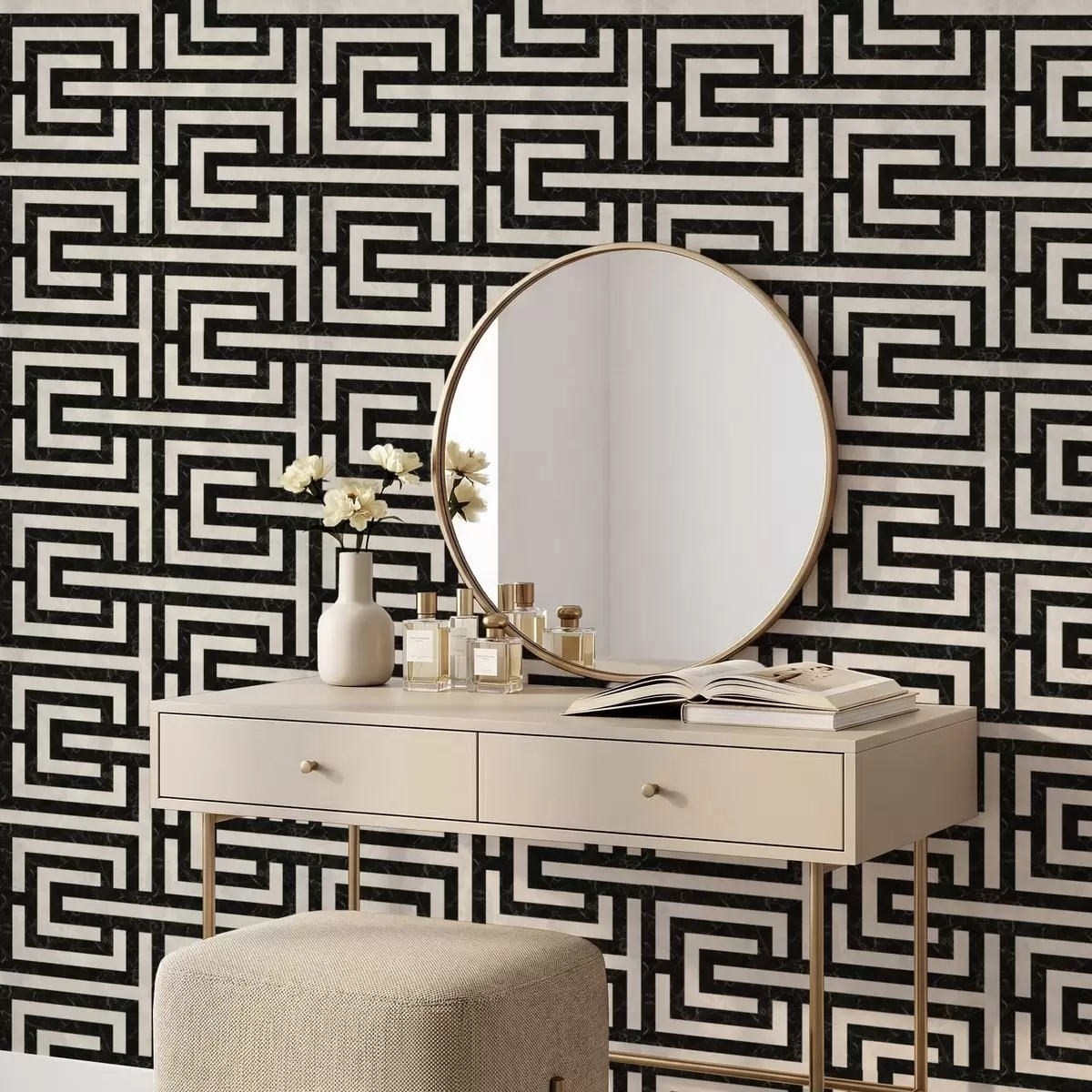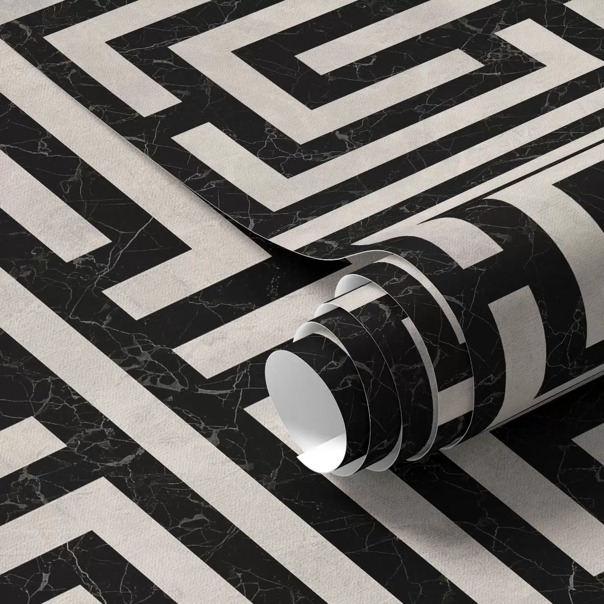 Тапет Черно-бял геометричен лабиринт Nr. a01073