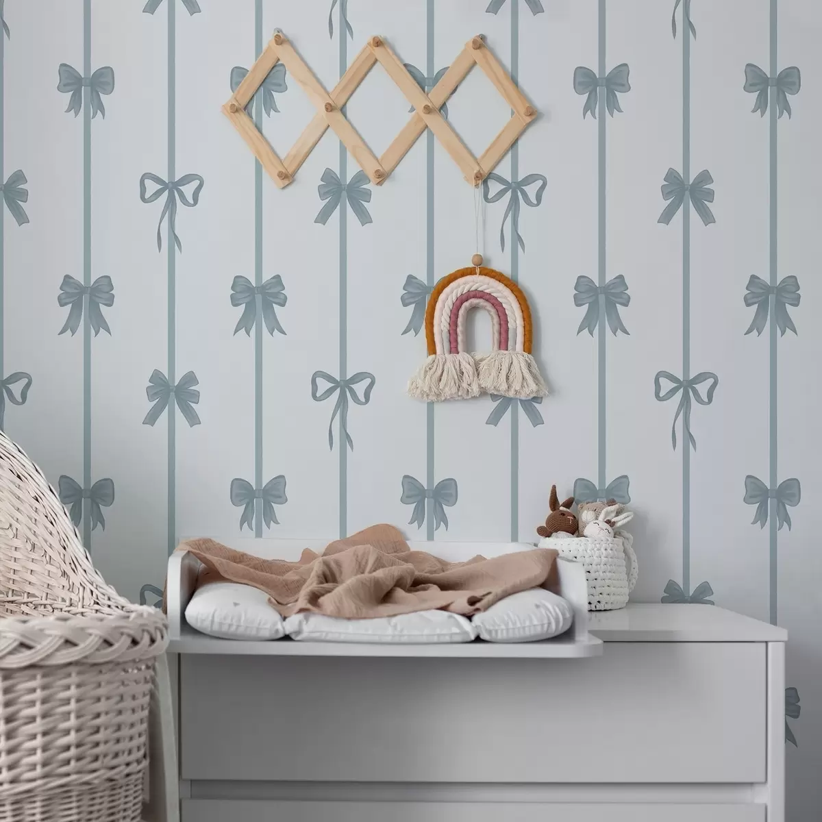 Тапет Сини панделки с ленти на светъл фон Nr. a01074v2