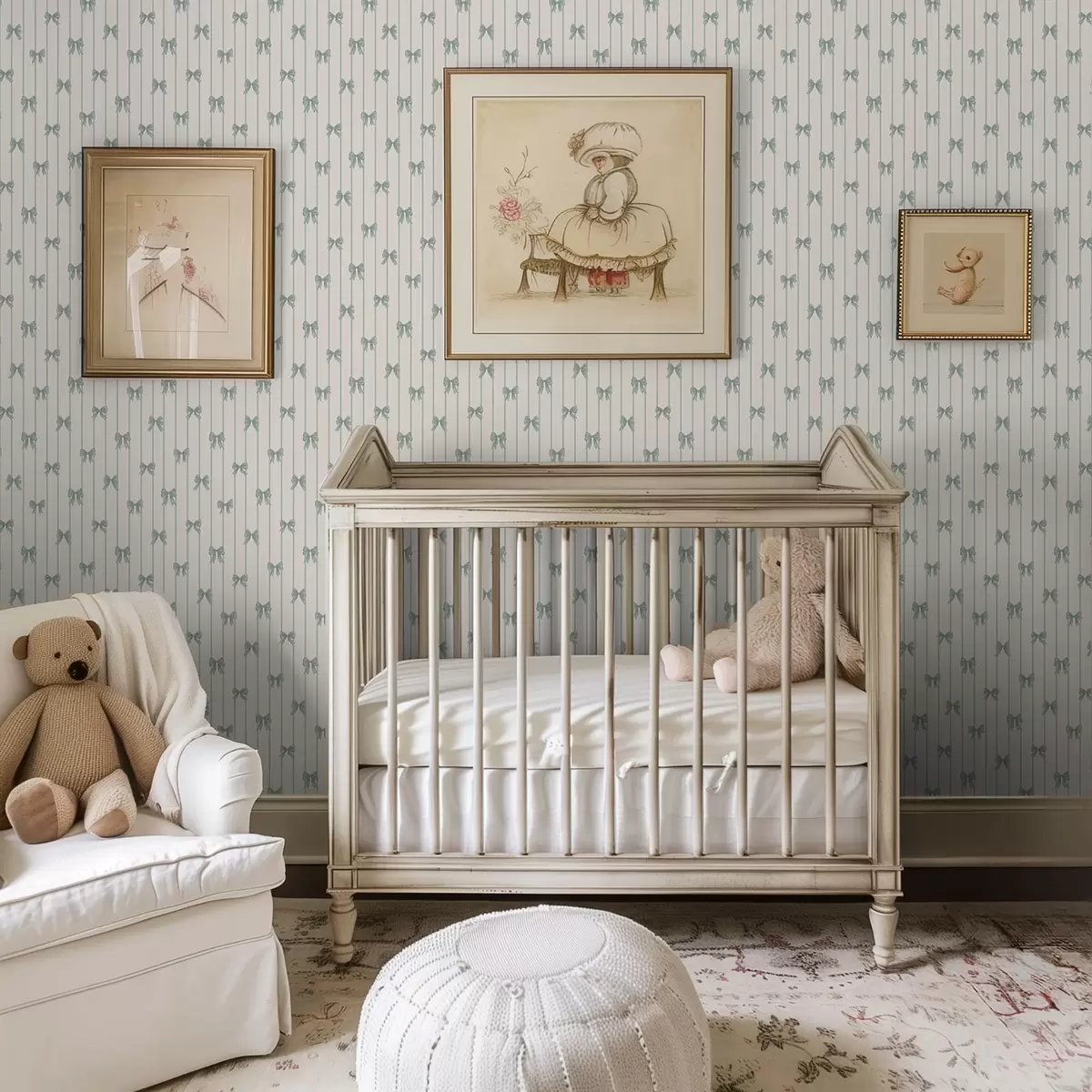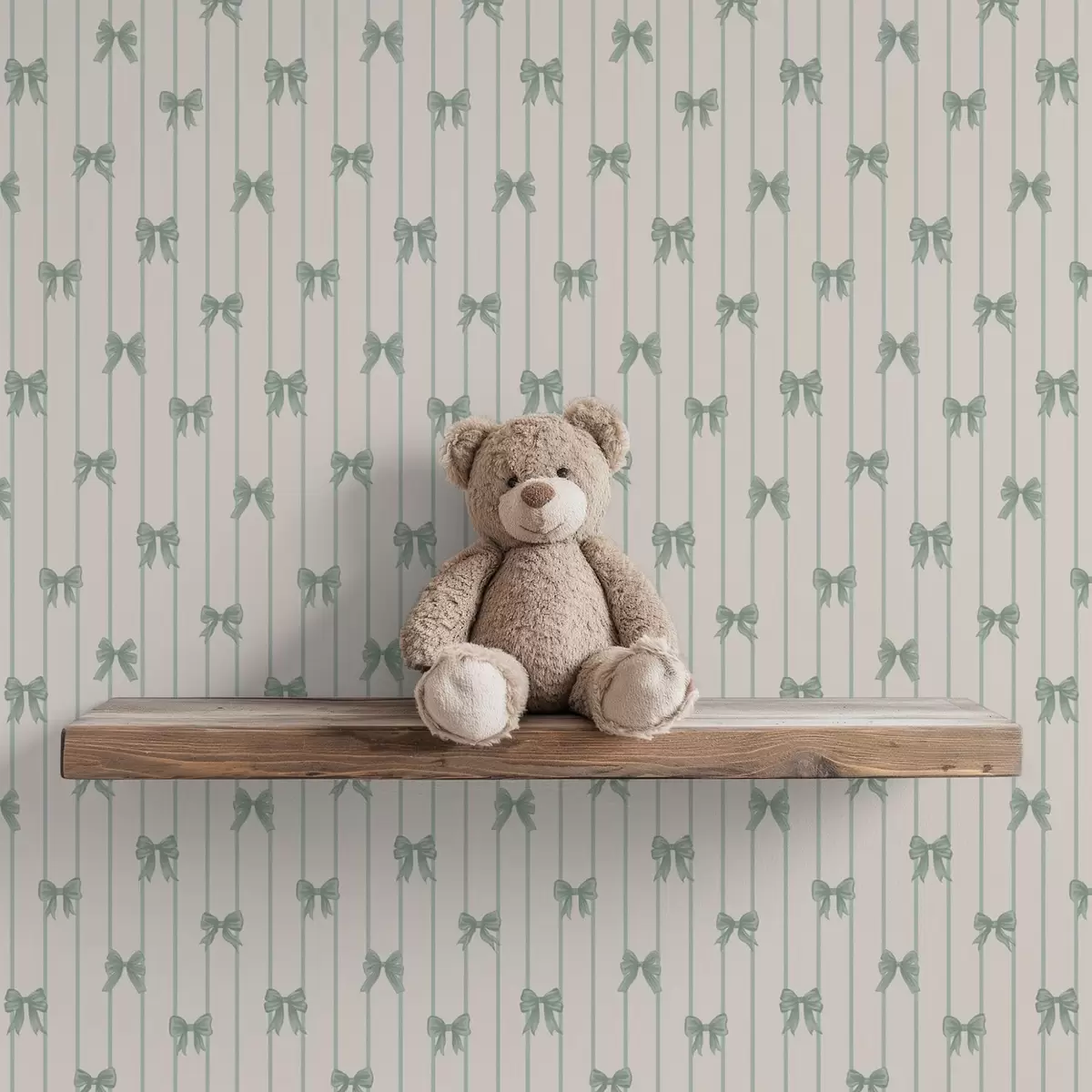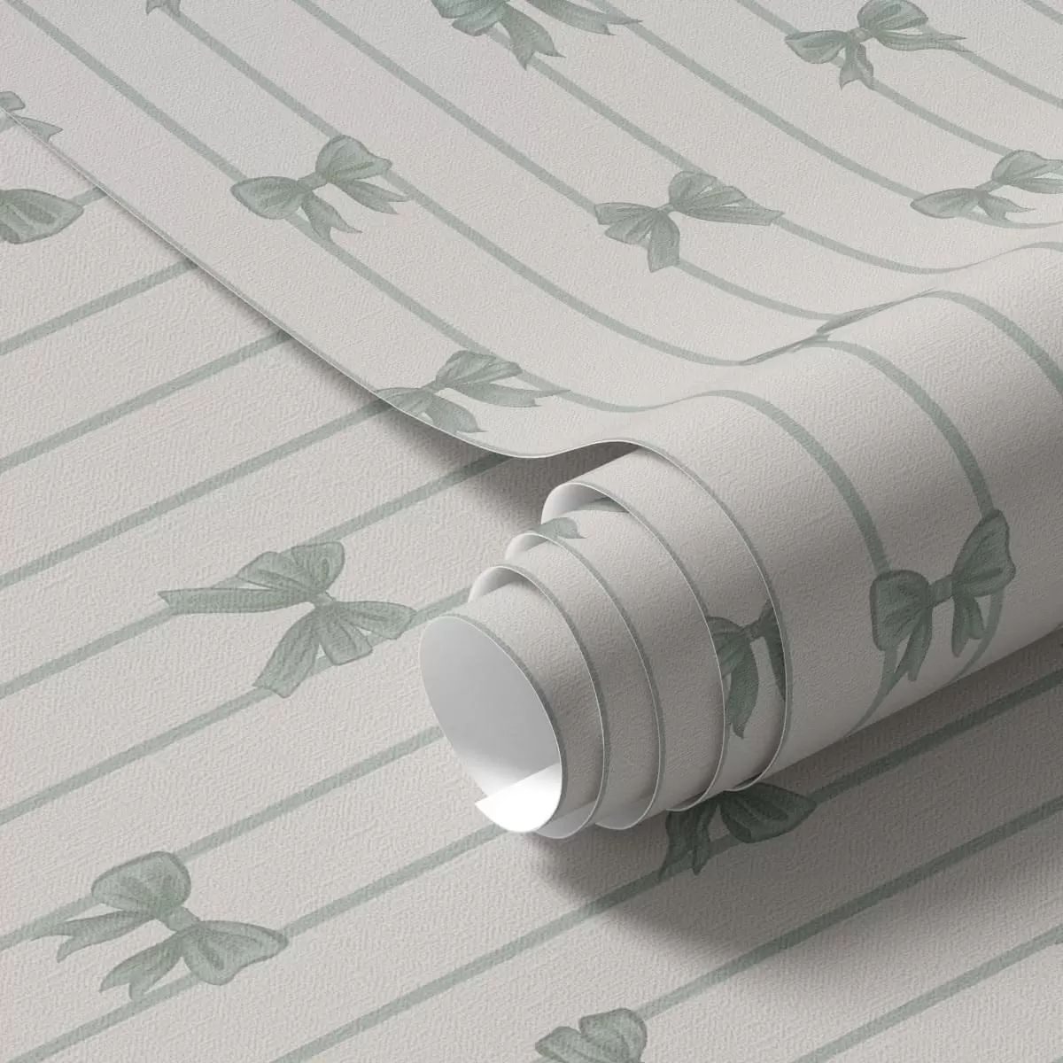 Тапет Малки зелени панделки с райета на бежов фон Nr. a01076v2