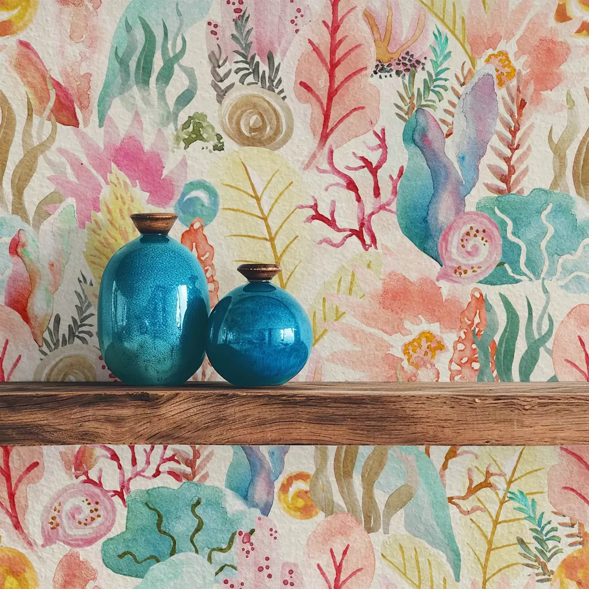 Тапет Акварелна подводна градина с корали и водорасли Nr. a01083